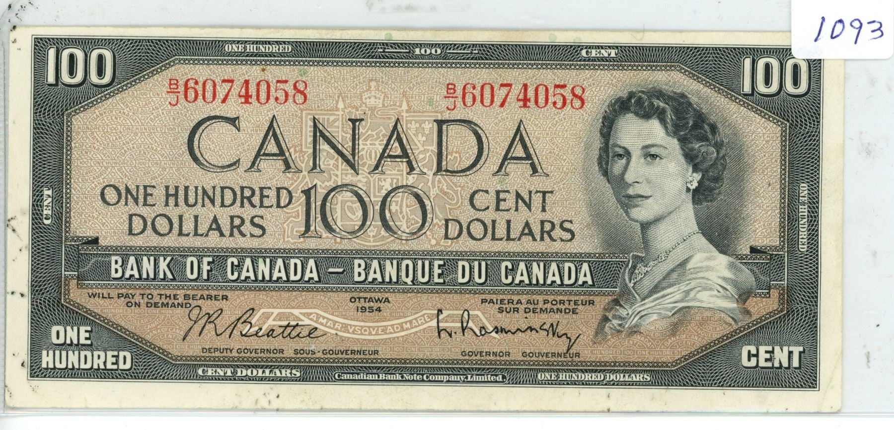 1 - 1954 $100 Bank Of Canada Bill UNC