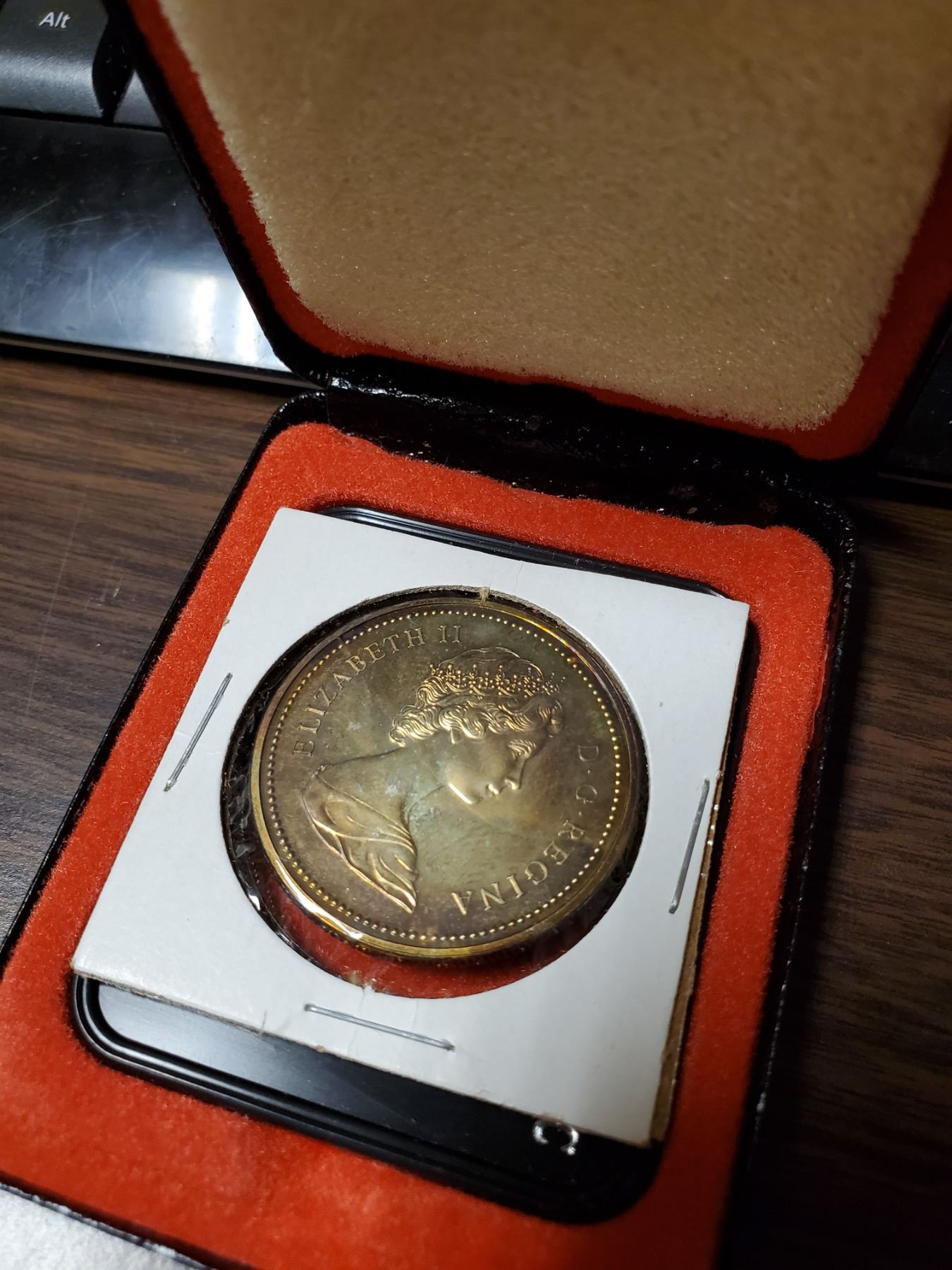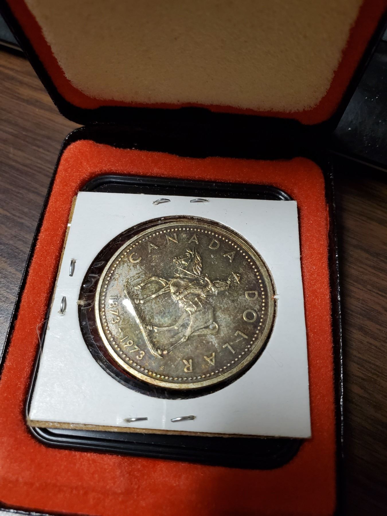 1-1973 Mountie Canadian silver dollar in black case,1-dollar