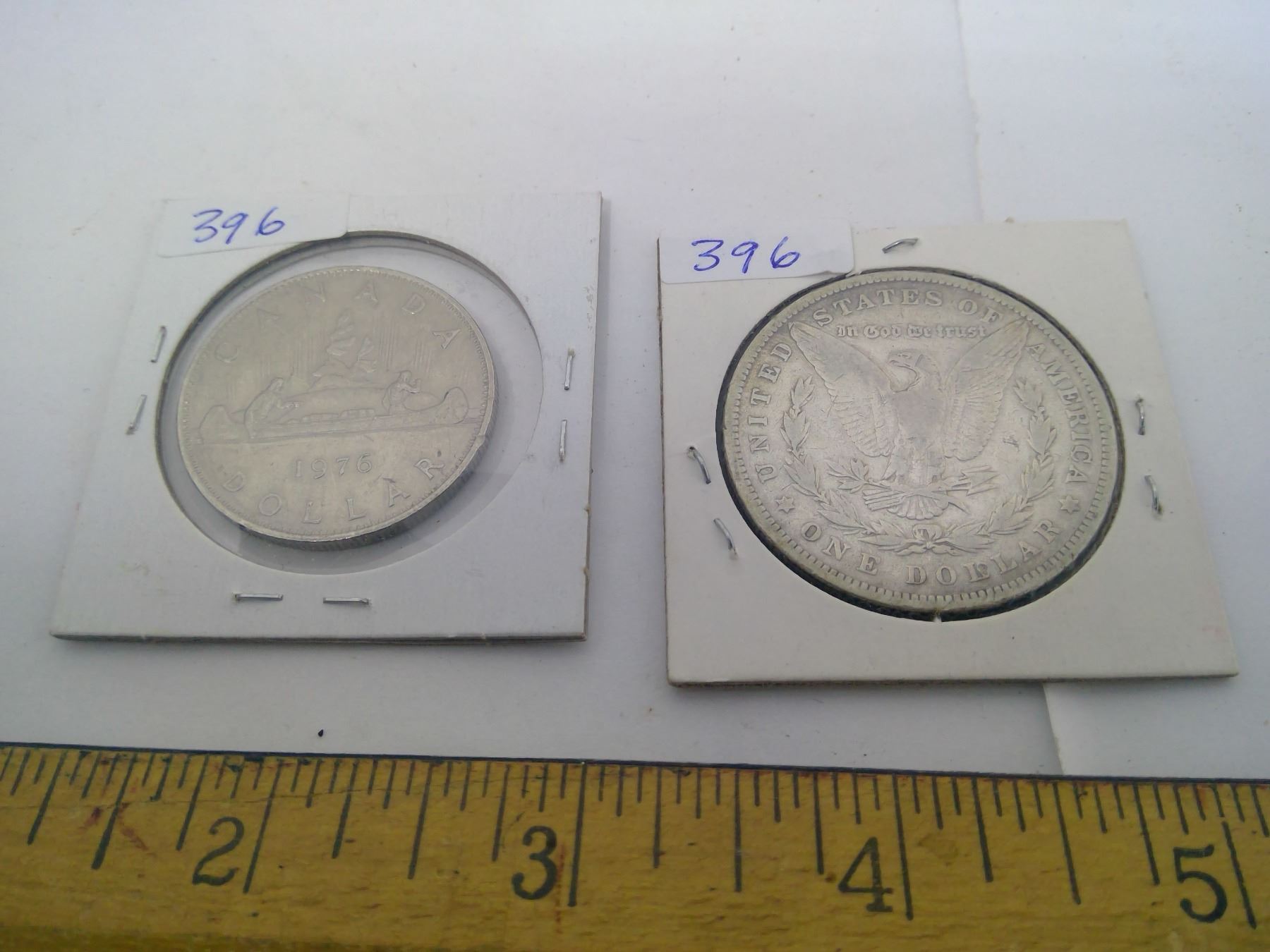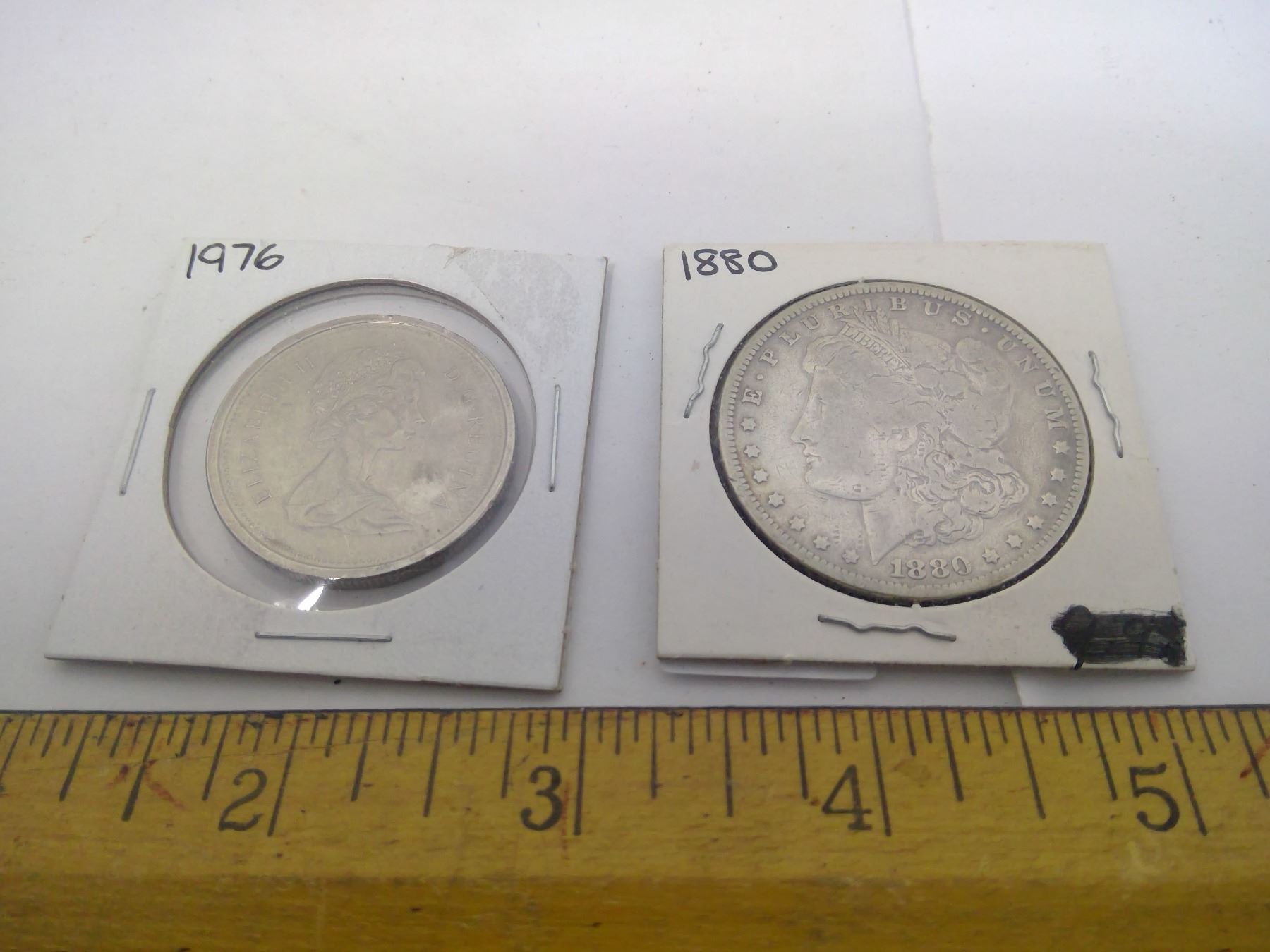 1 1976 CANADIAN SILVER DOLLAR + 1 U.S.A 1880 MORGAN SILVER DOLLAR