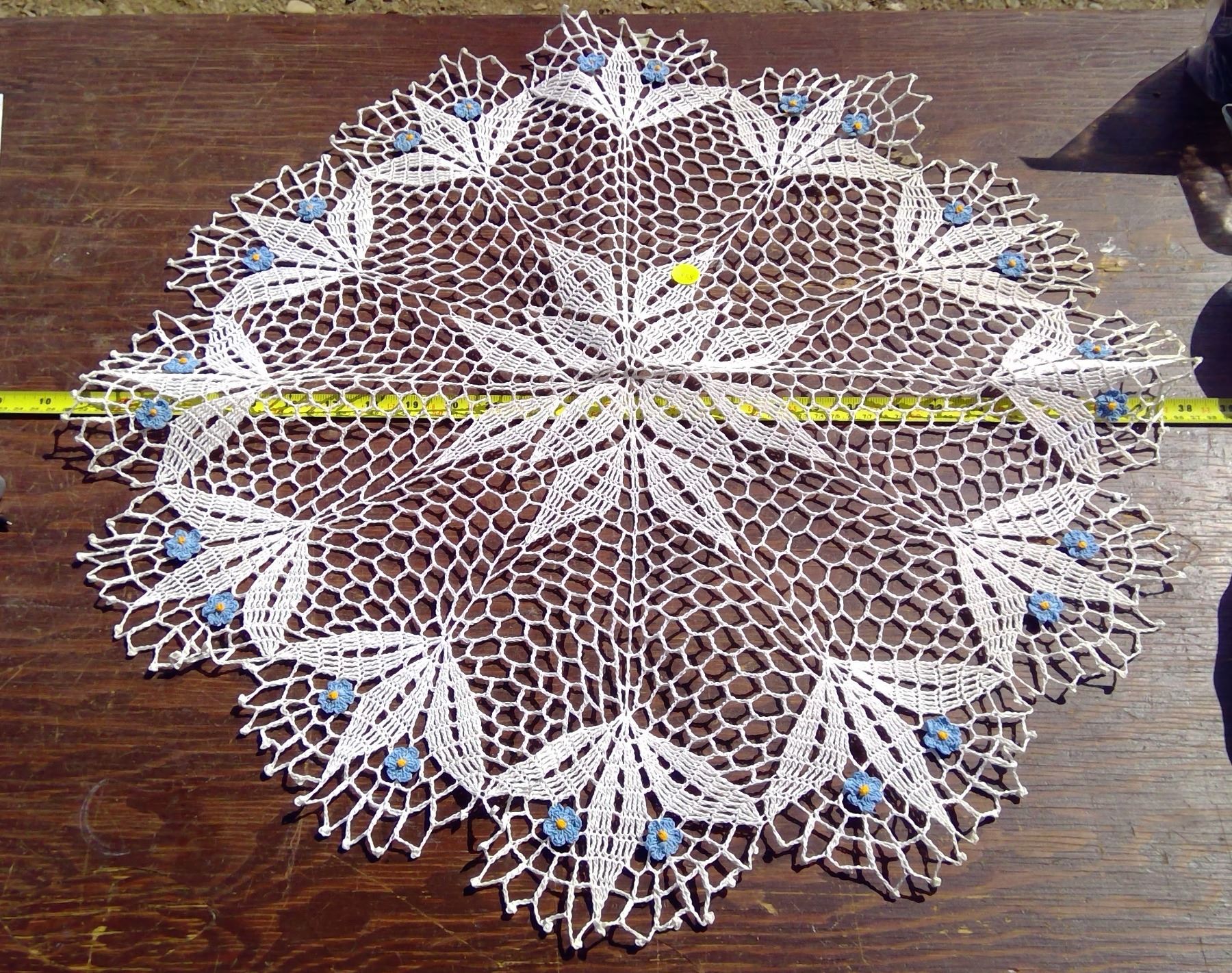 1 - 27" Crochet Centre Piece with Blue Flowers