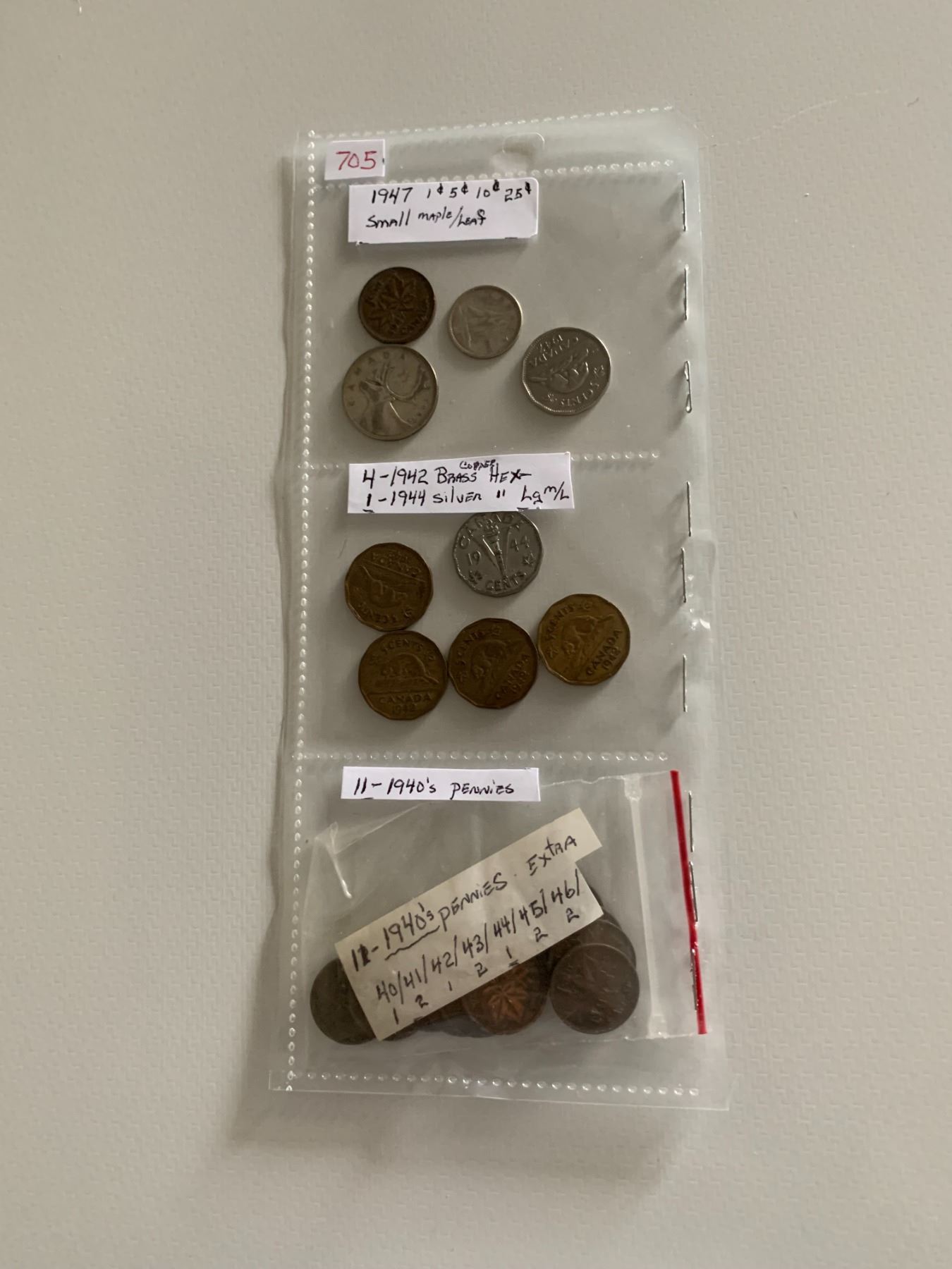 1/3 sheet of various coins(1947, 1942, 1944)