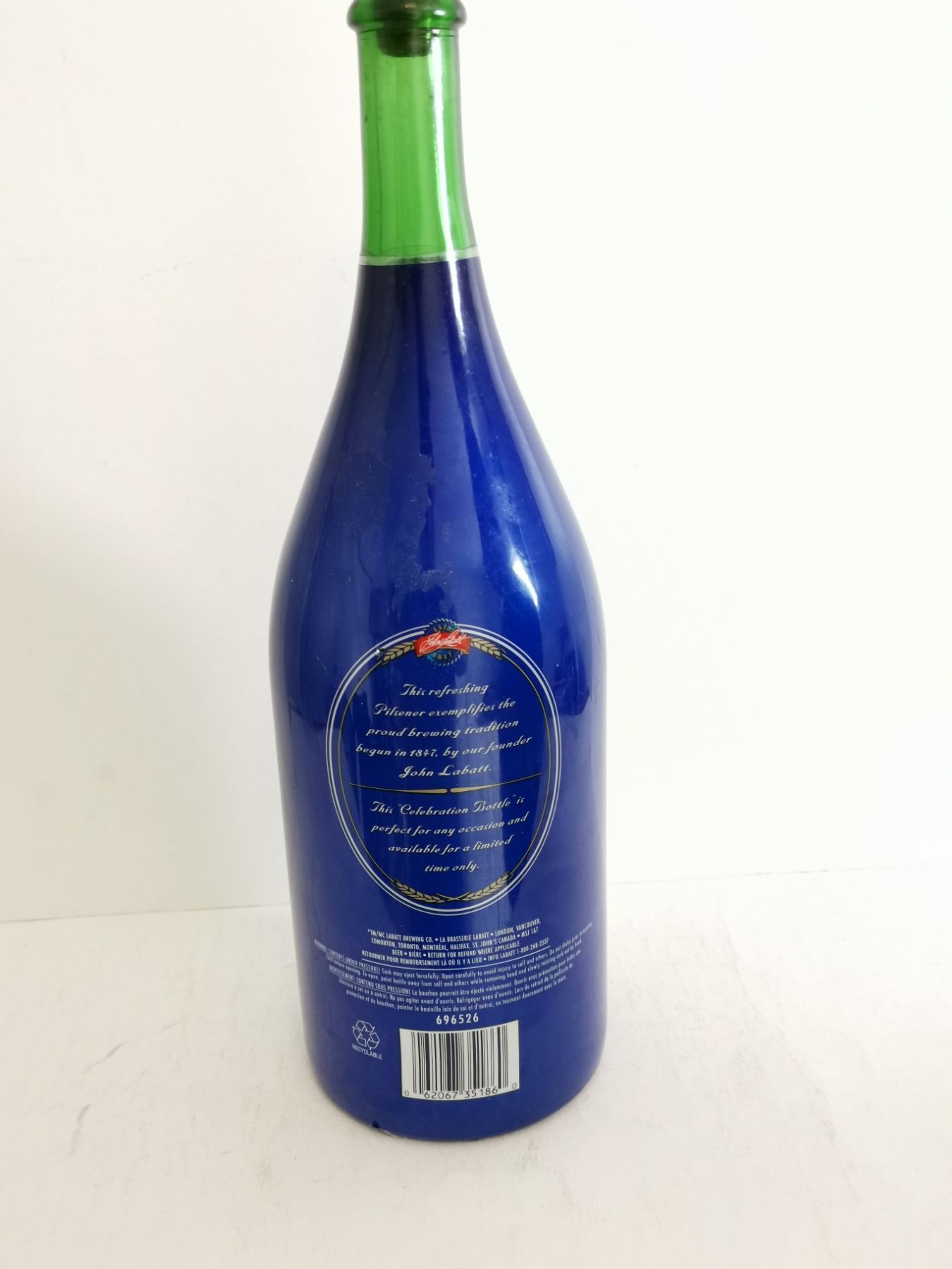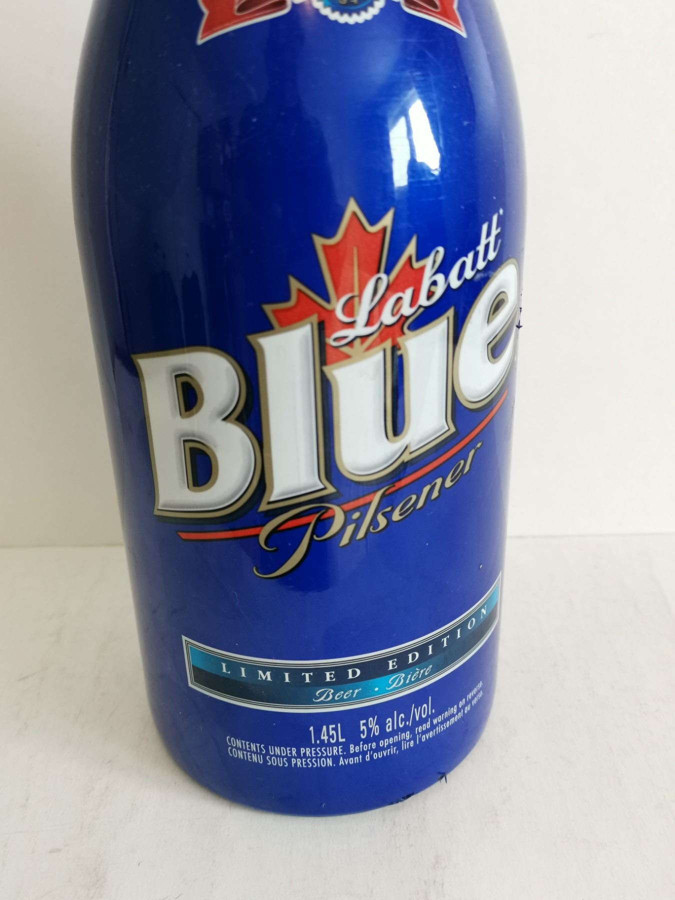 1.45L Labatt Blue Bottle – Empty. 14” Tall
