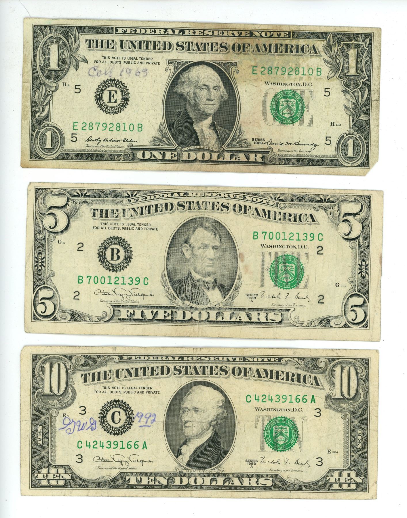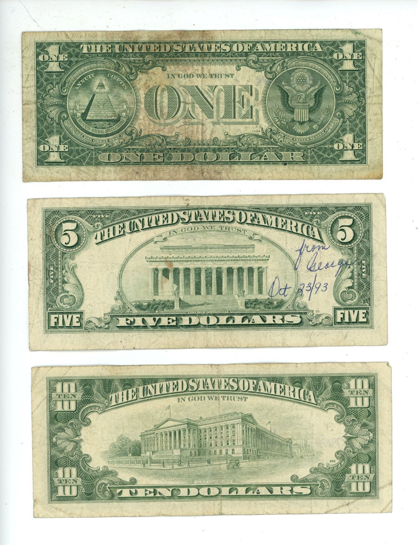 $1, $5, $10 US Bills