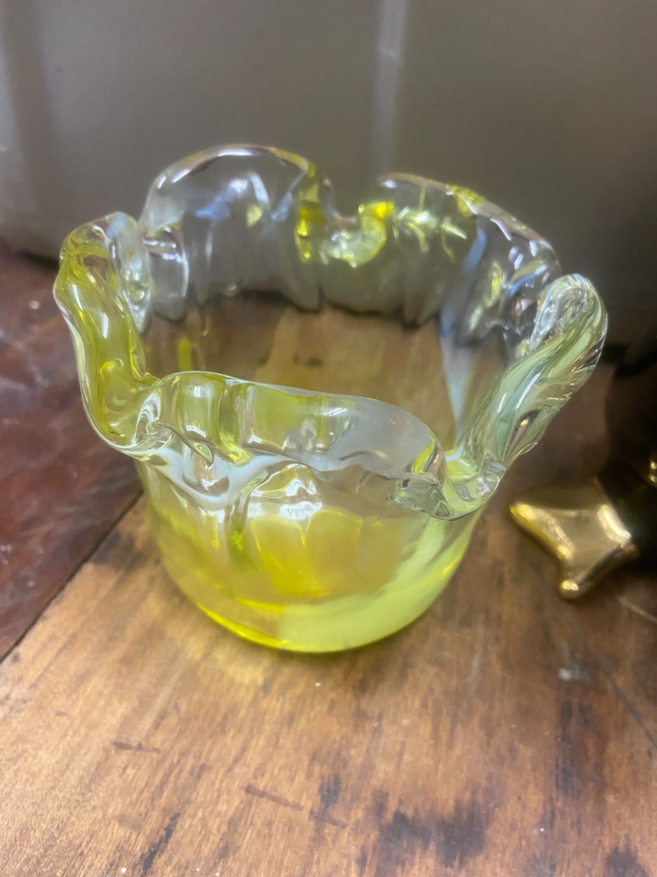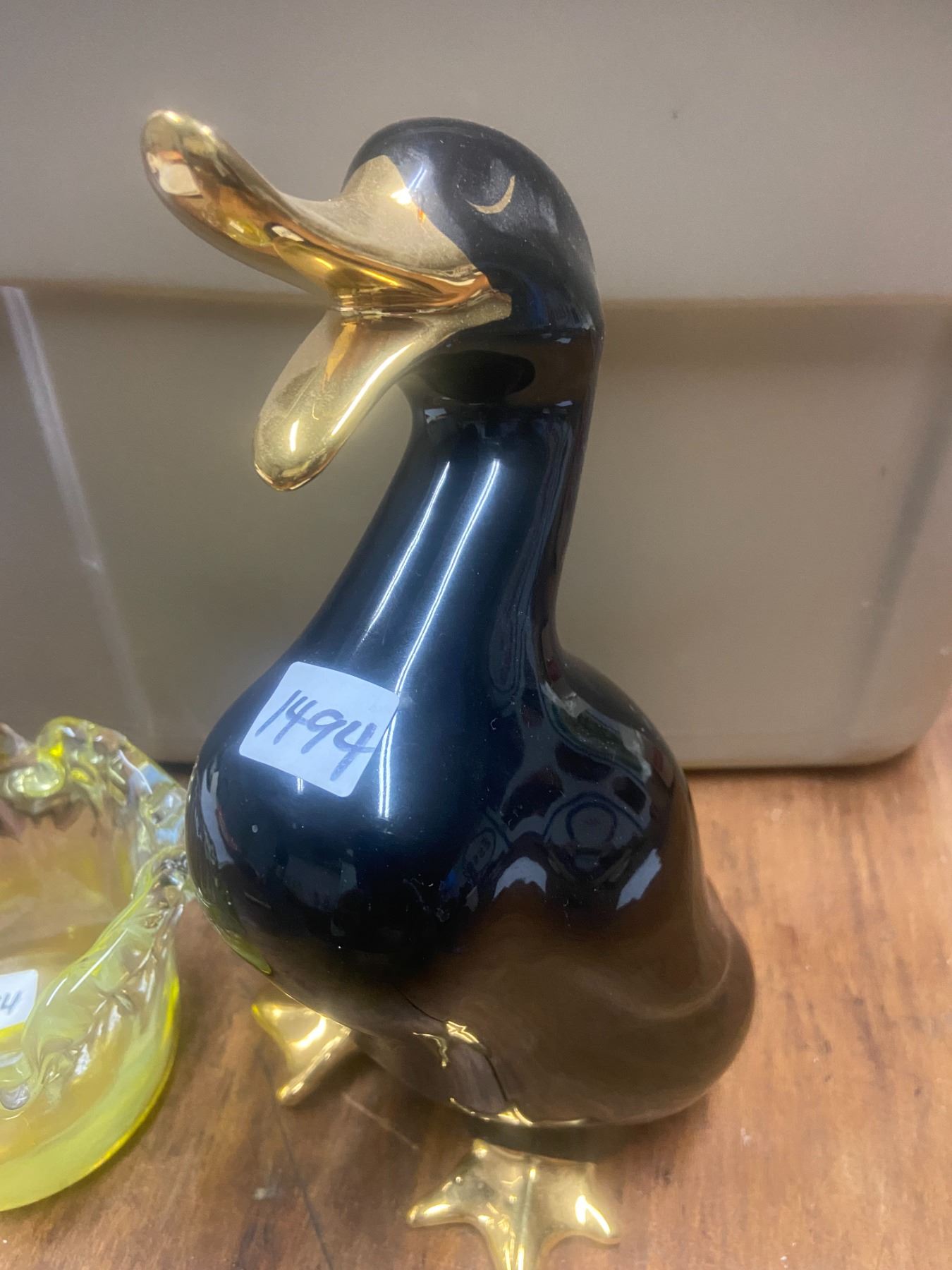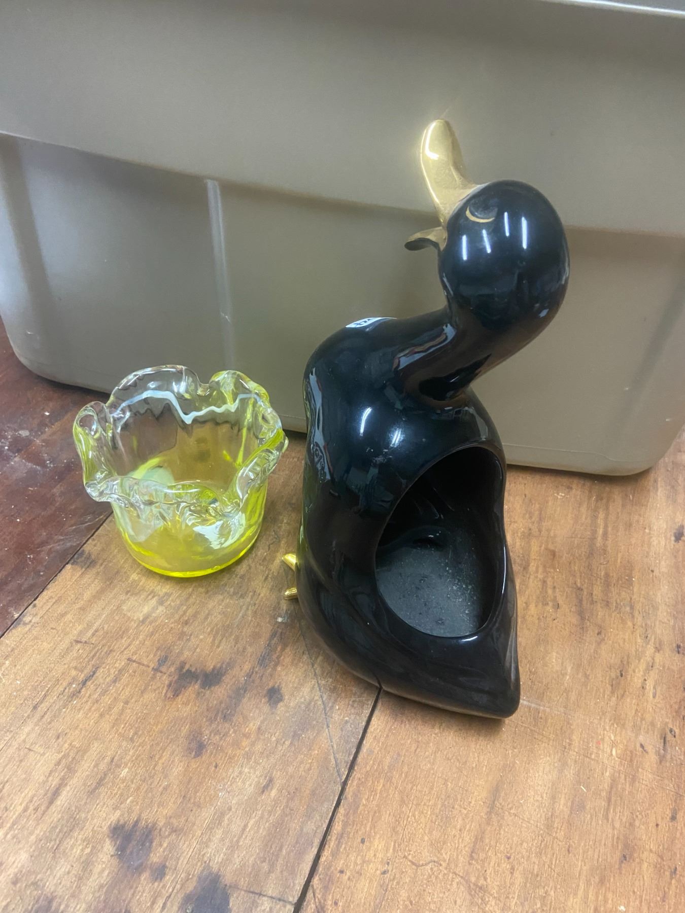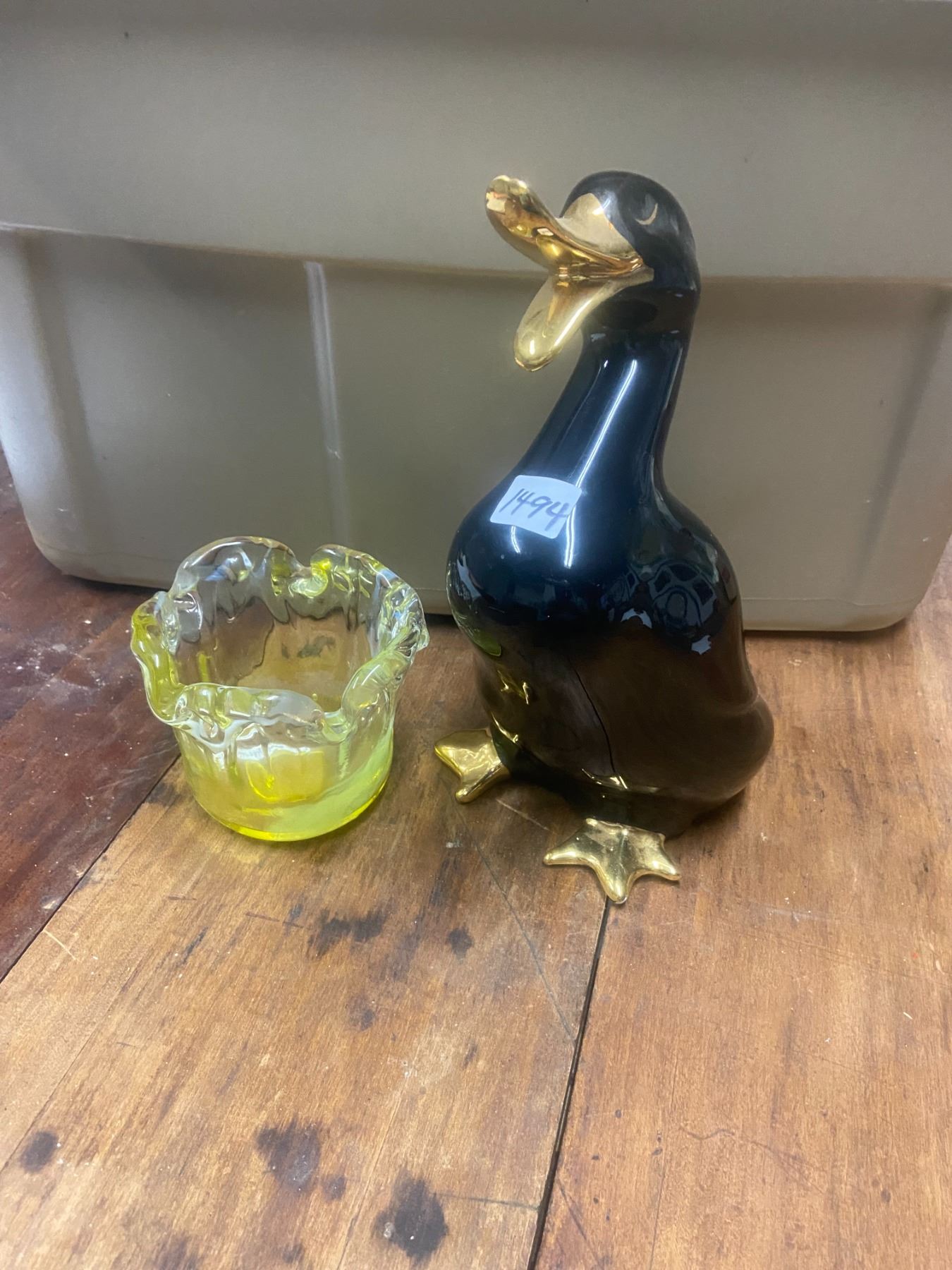 1 Art glass bowl & ceramic duck planter - Duck 9" tall - Bowl 3 1/2" tall