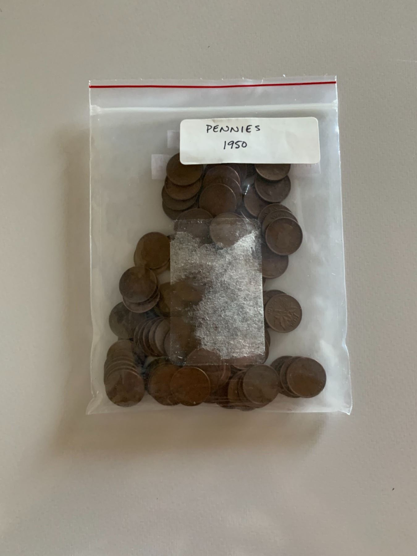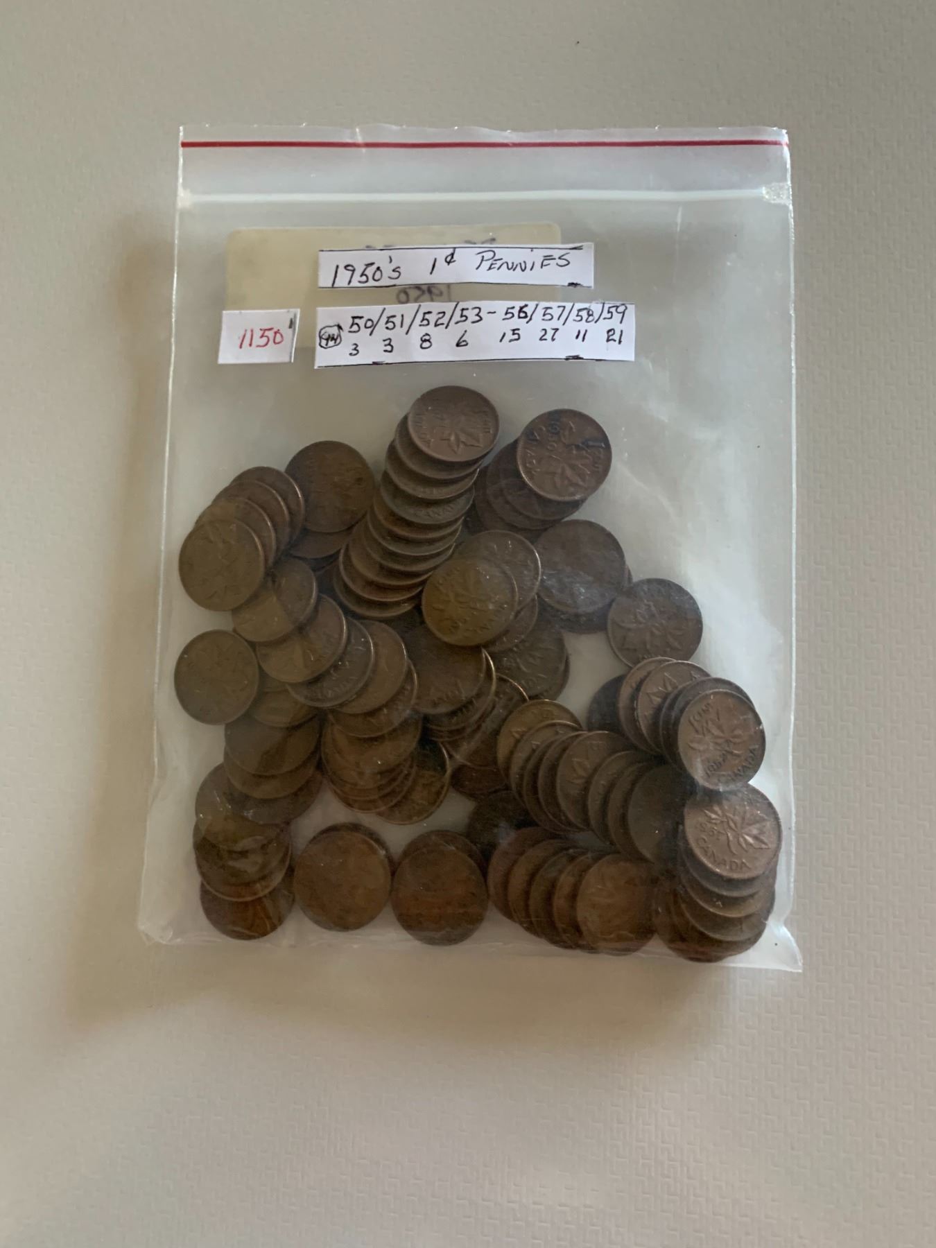 1 Bag of 1950's Canadian 1 Cent coins. (94 Coins)
