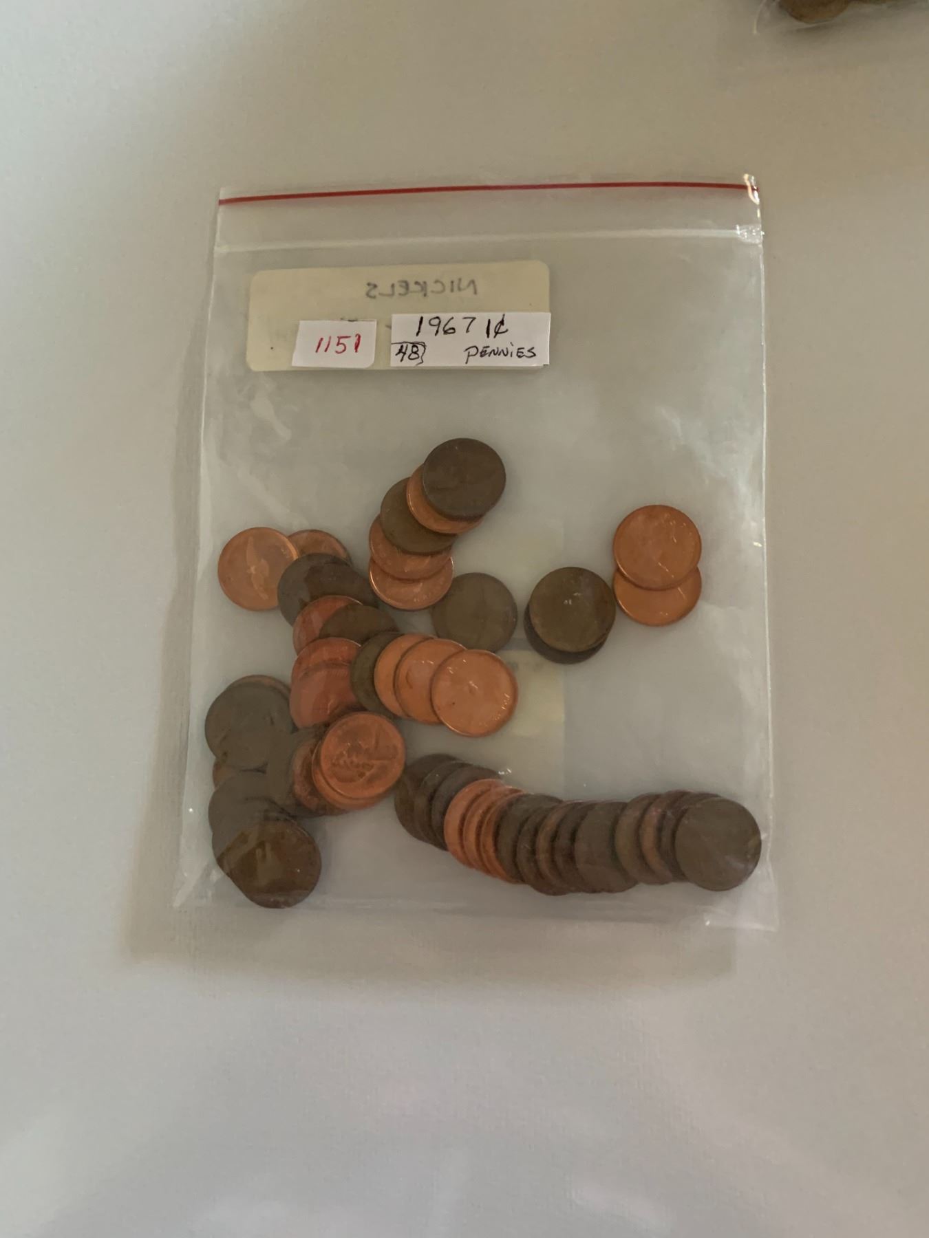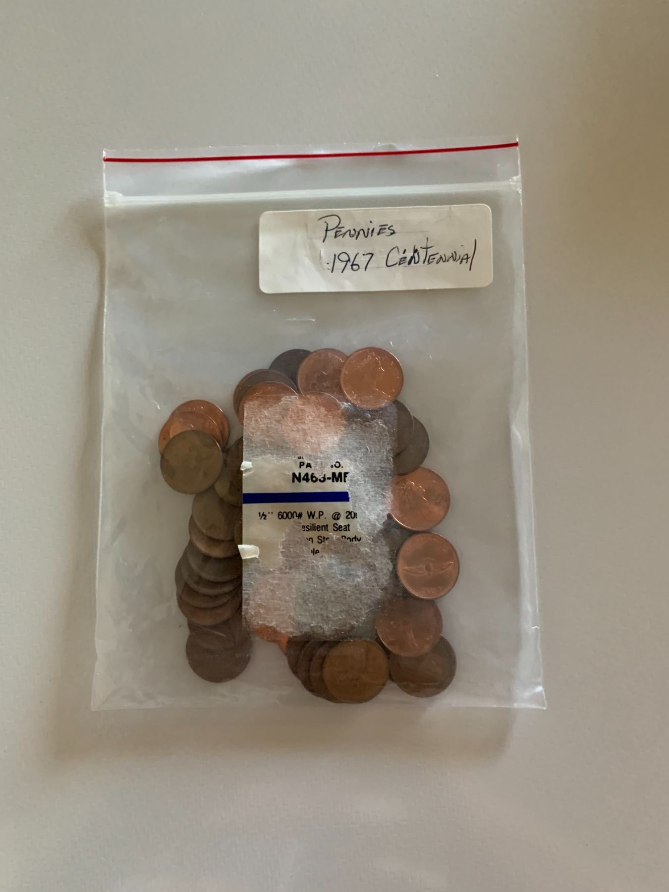 1 Bag of 1967's Canadian 1 Cent coins. (45 Coins)