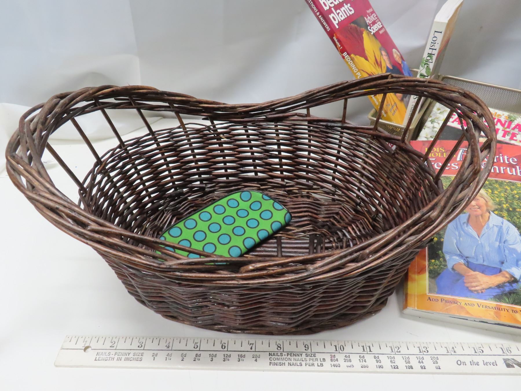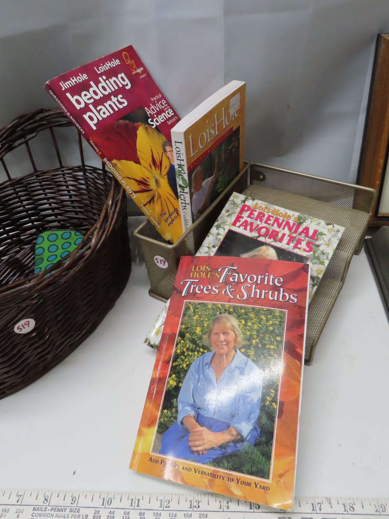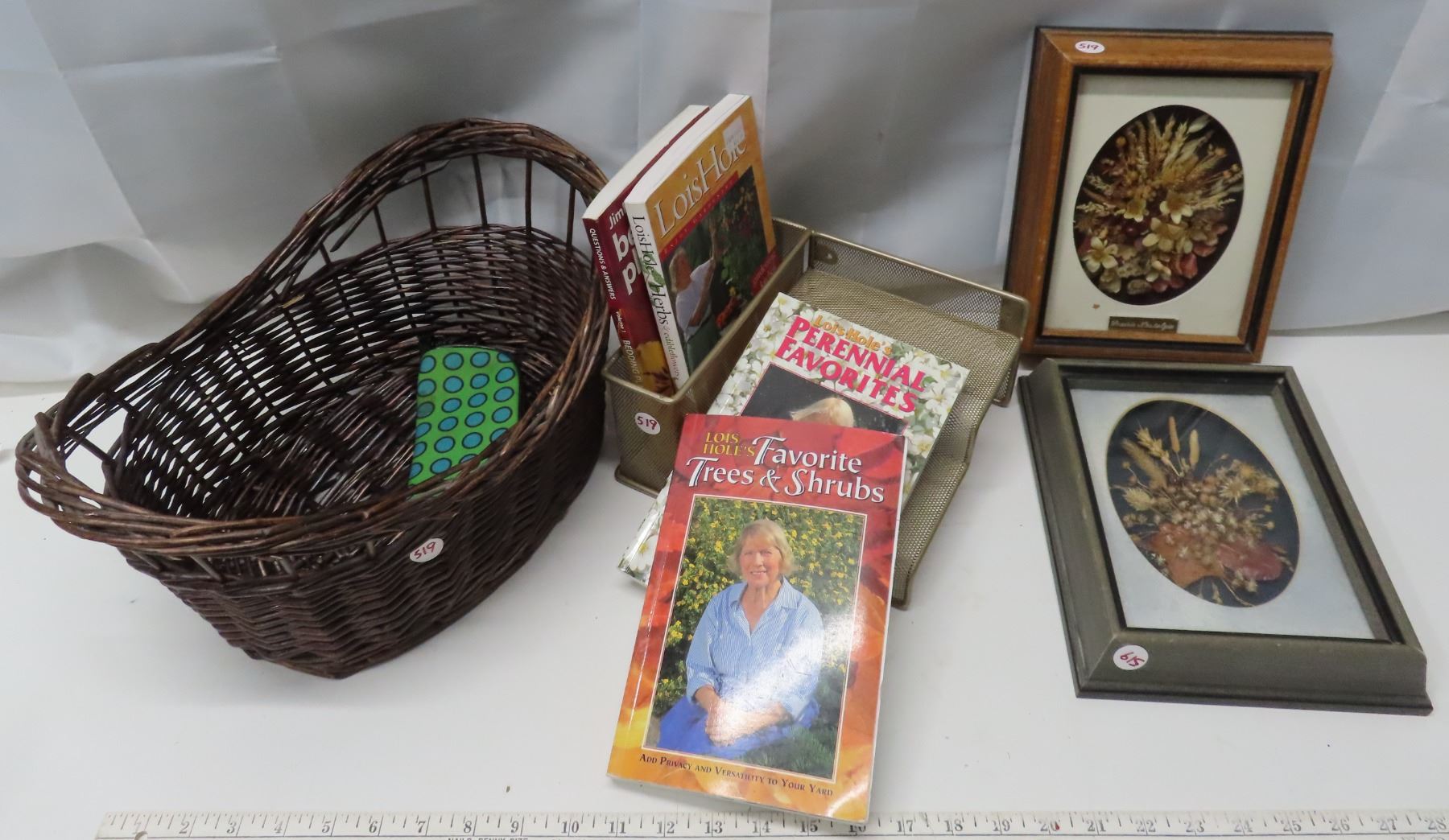 1 Basket of 4 gardening books + 2 frames with SK wild flowers