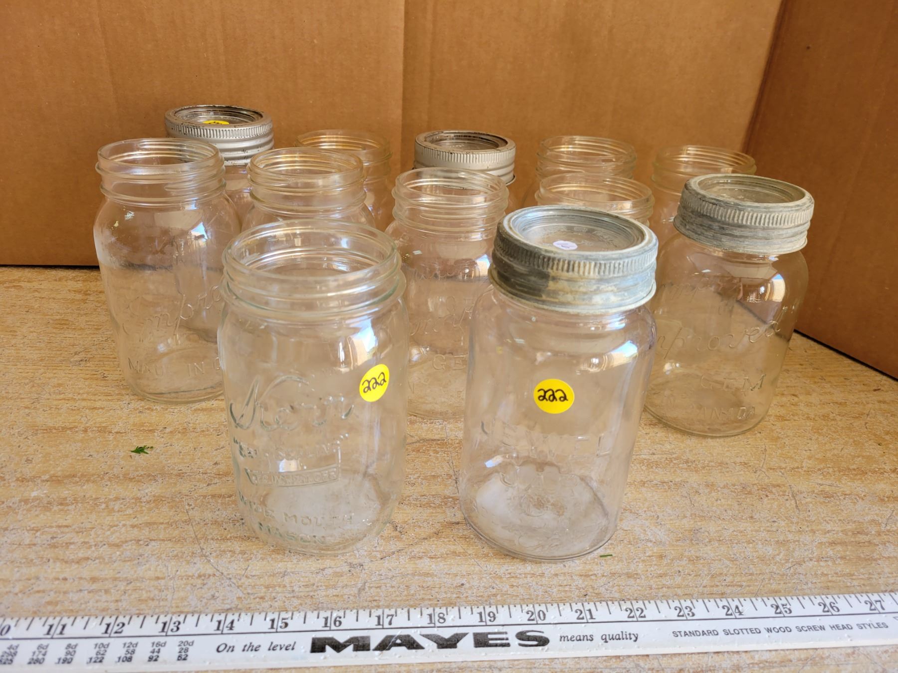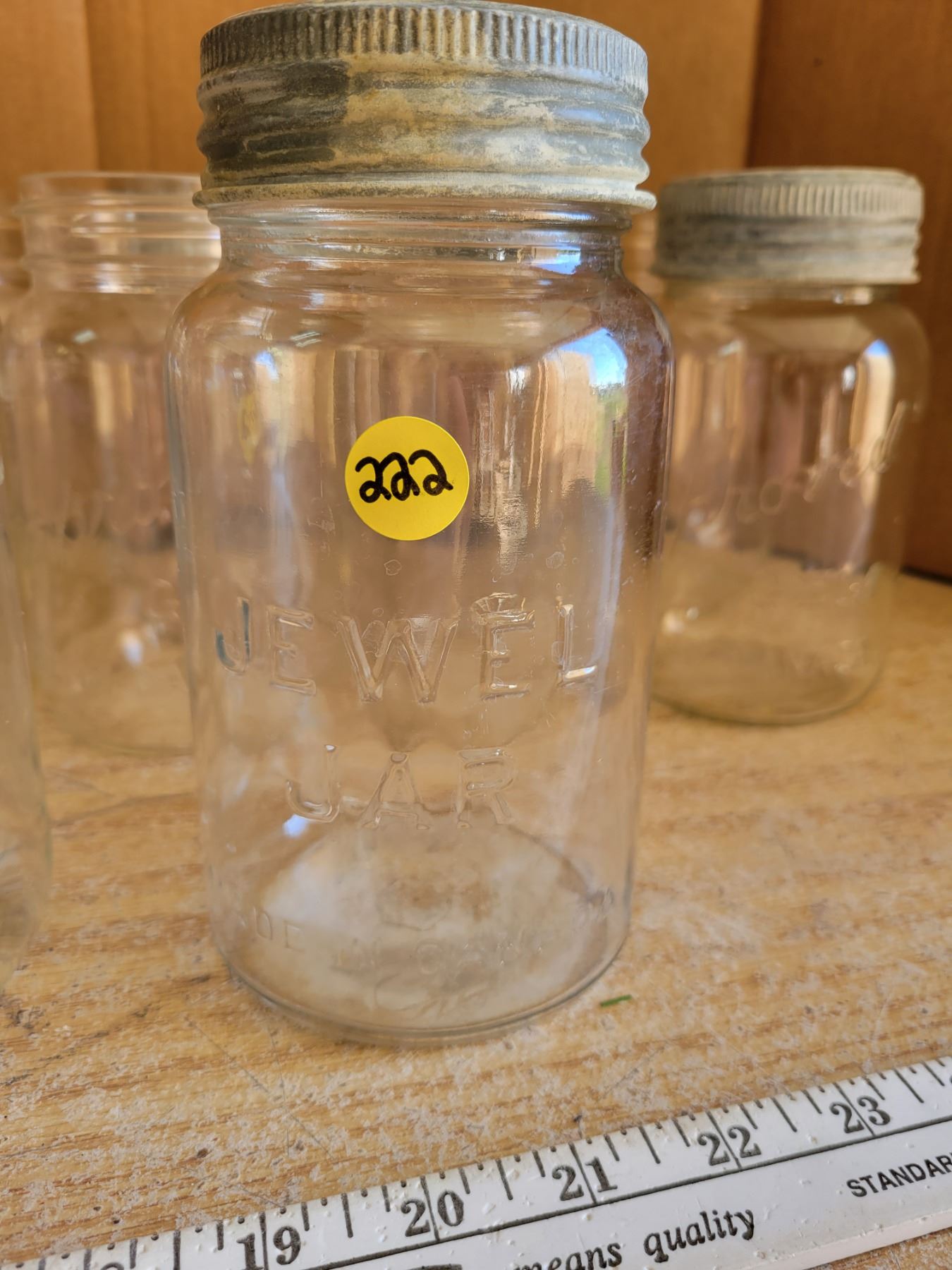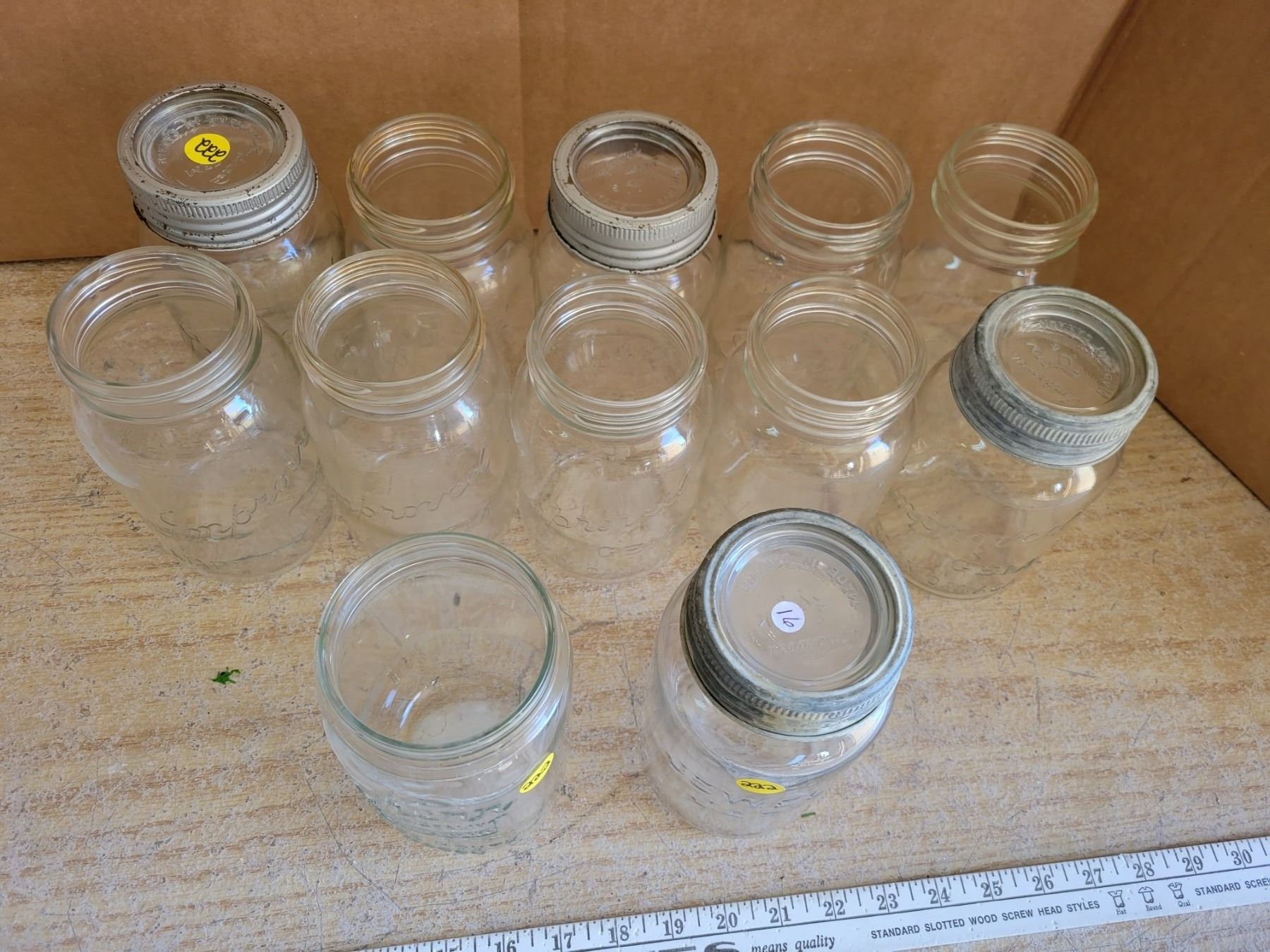 1 Dozen sealer jars - Improved Gem, Jewel jar, Kerr Mason