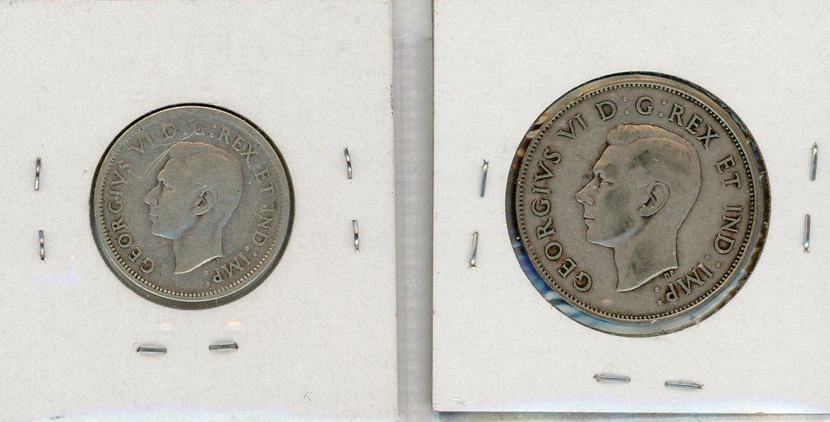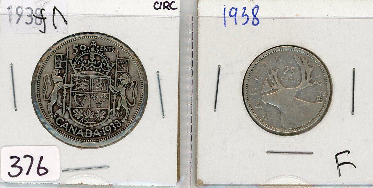 1-FIFTY CENT COIN AND 1-TWENTY FIVE CENT COIN (CANADA) *1938*