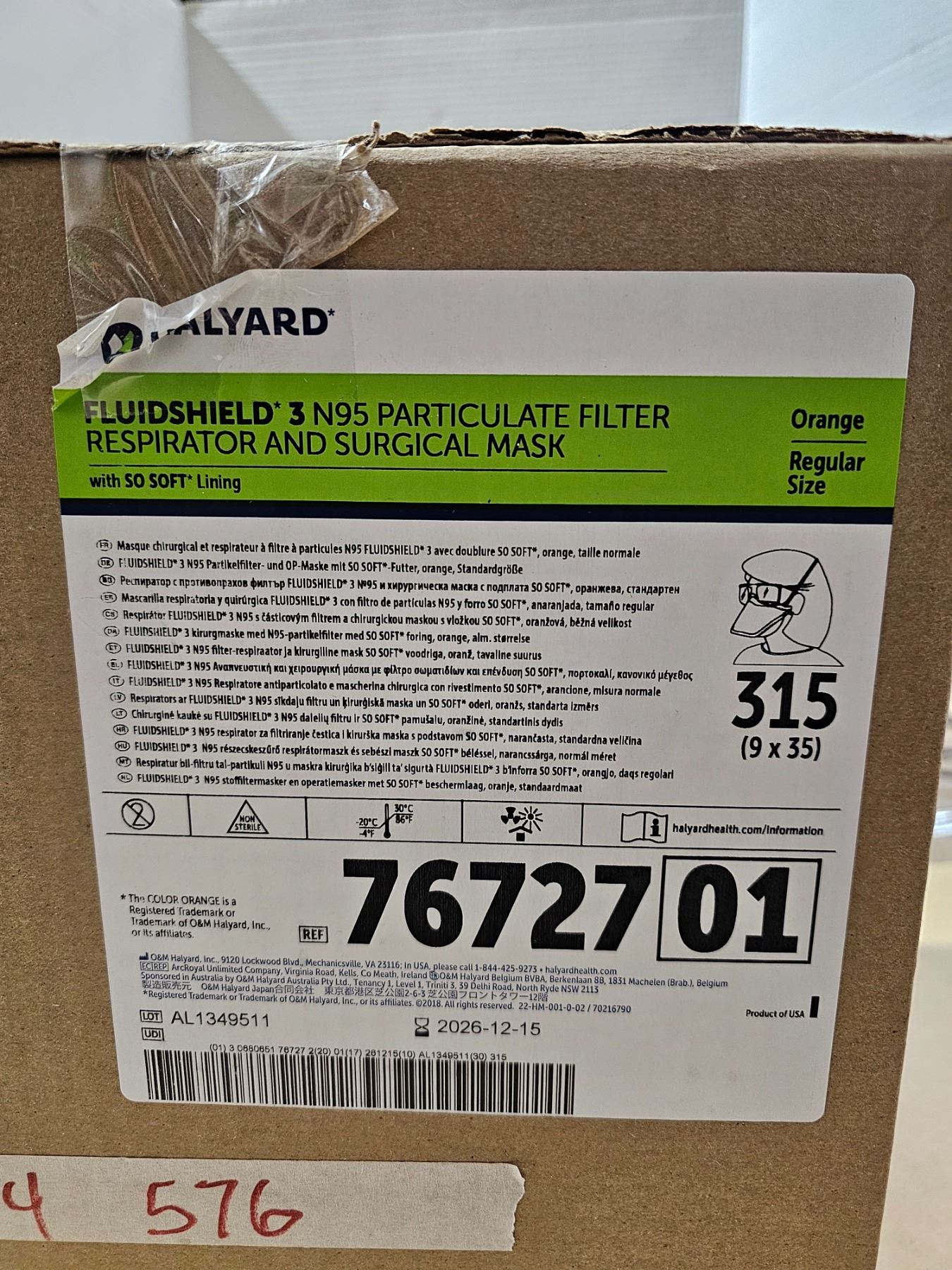 (1) Full Case of N95 Masks (9 box/case, 35 masks/box)