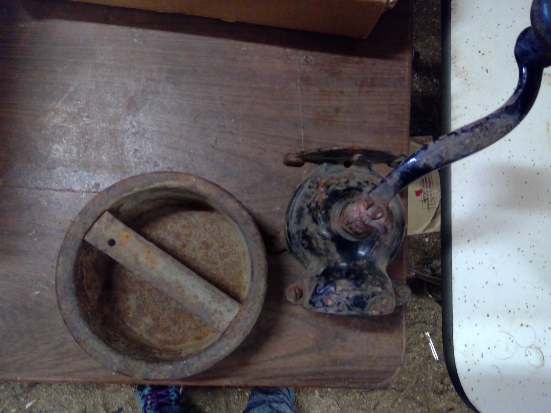 1 GALLON CREAM CAN LID, AND A WALL MOUNTED COFFEE GRINDER