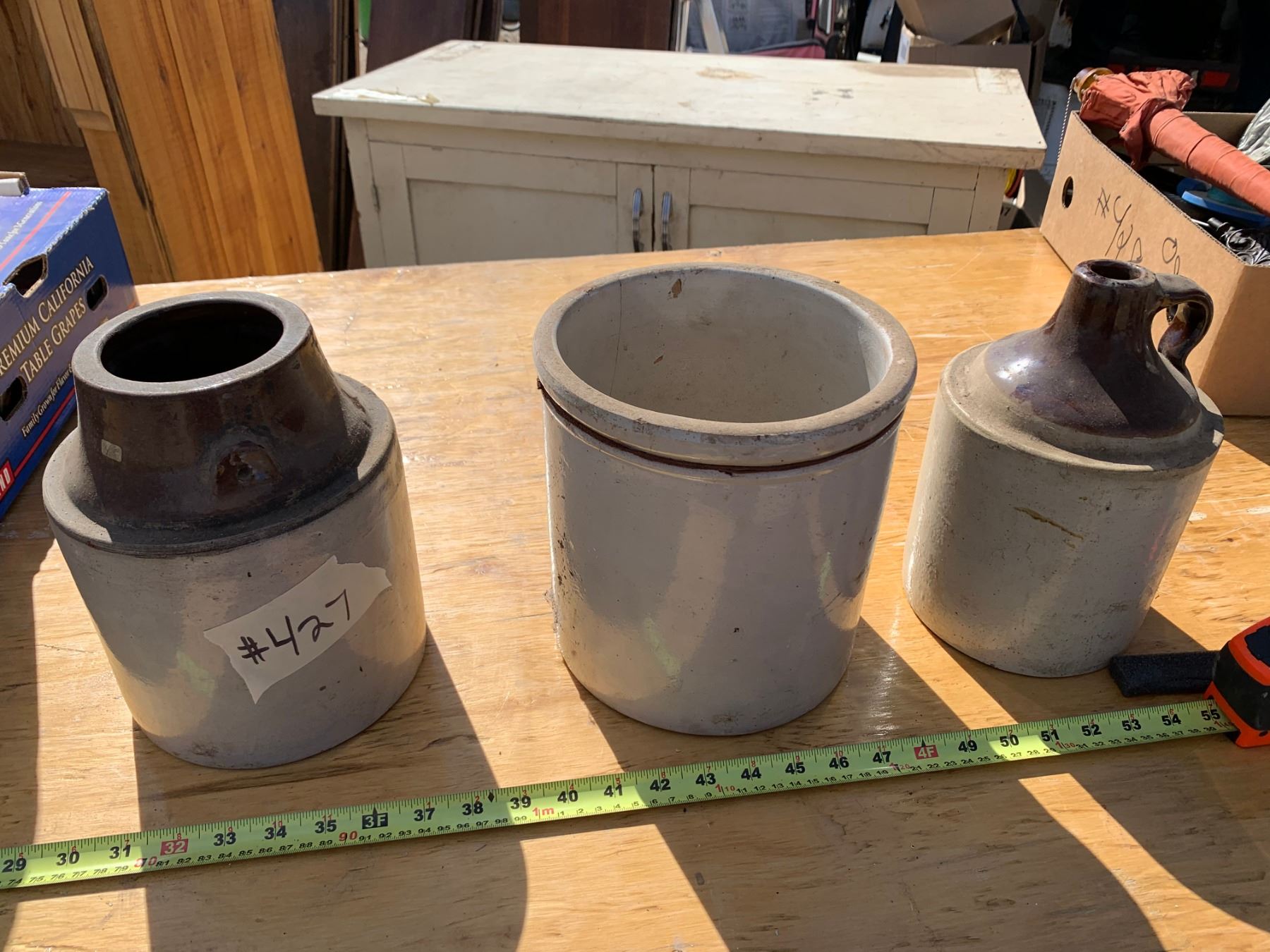 1 Gallon Crock, 1 Gal Jug, 1 Gal Pickle Crock - Some Cracks
