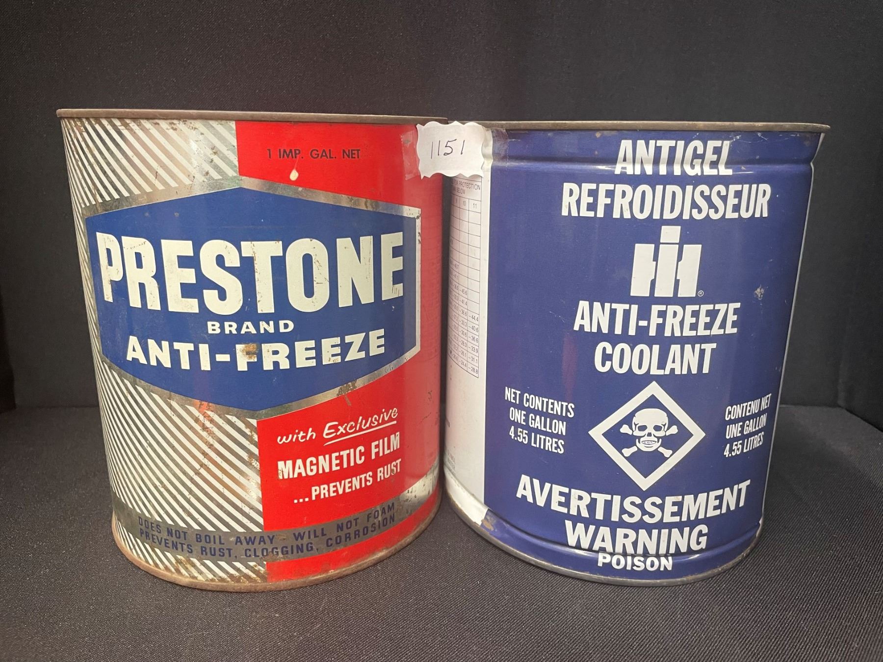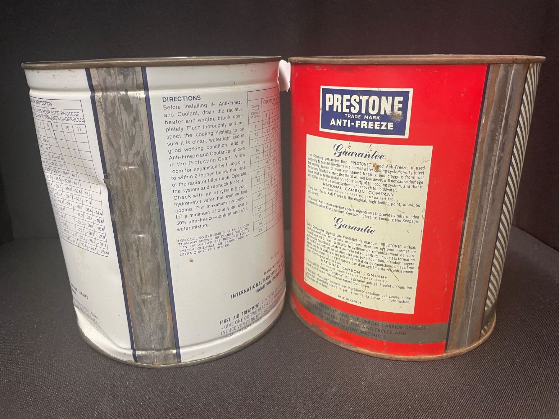 1 Gallon Prestone Anti-Freeze Can & 1 Gallon International Anti-Freeze Can.