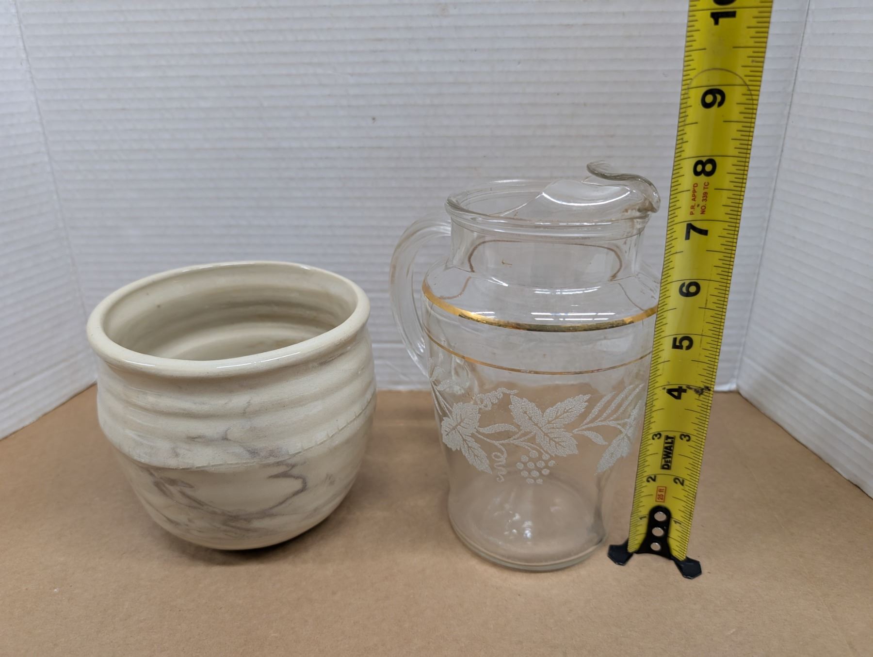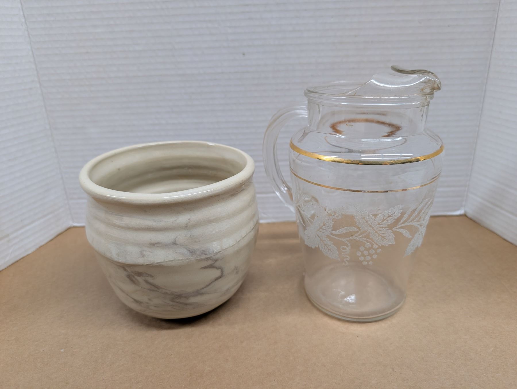 (1) Hand Made Ceramic Pot And (1) Glass Pitcher
