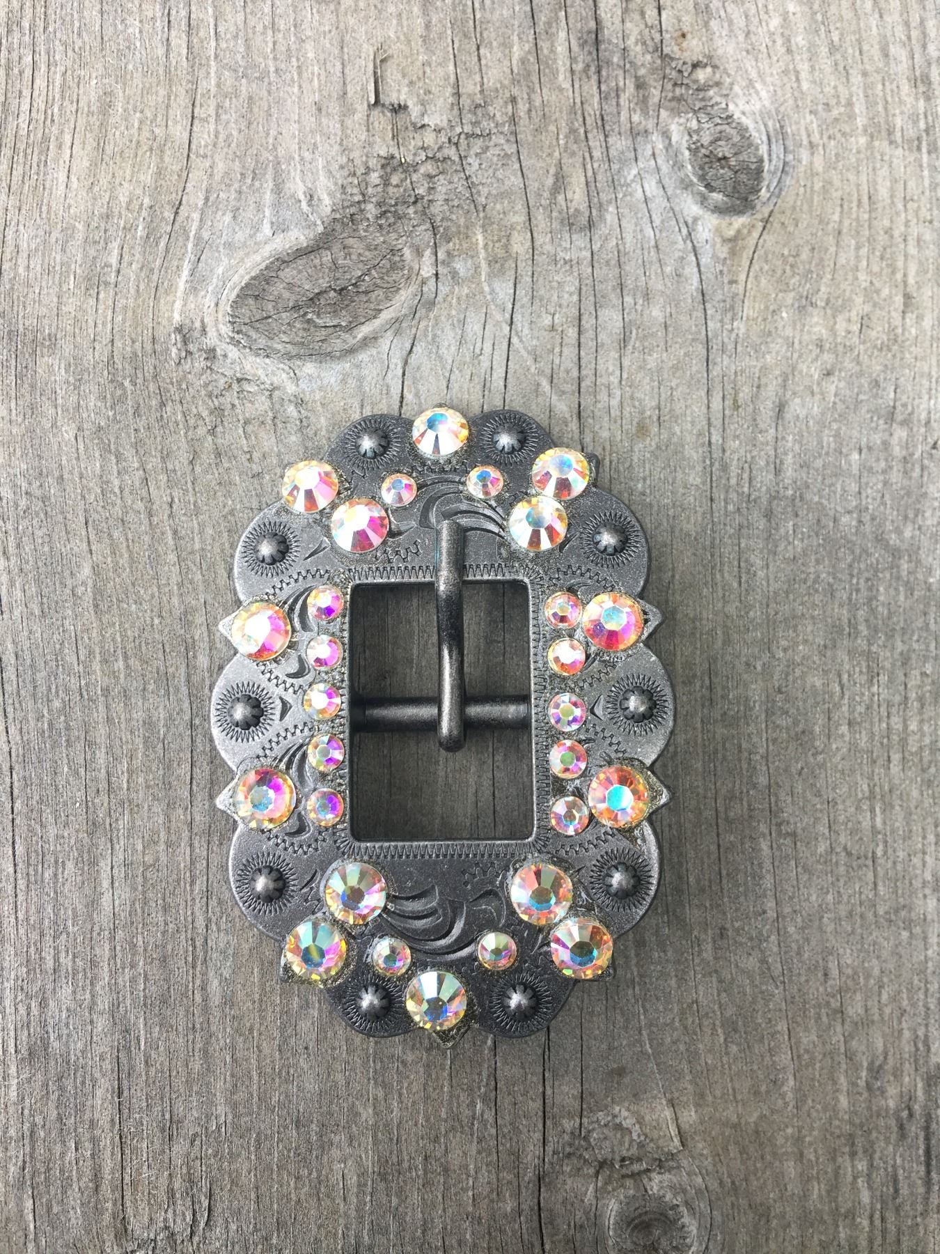 1 IRREDESCENT SWAROVSKI CRYSTALS/ANTIQUE SILVER BUCKLE 2"X3" FITS 3/4" STRAP