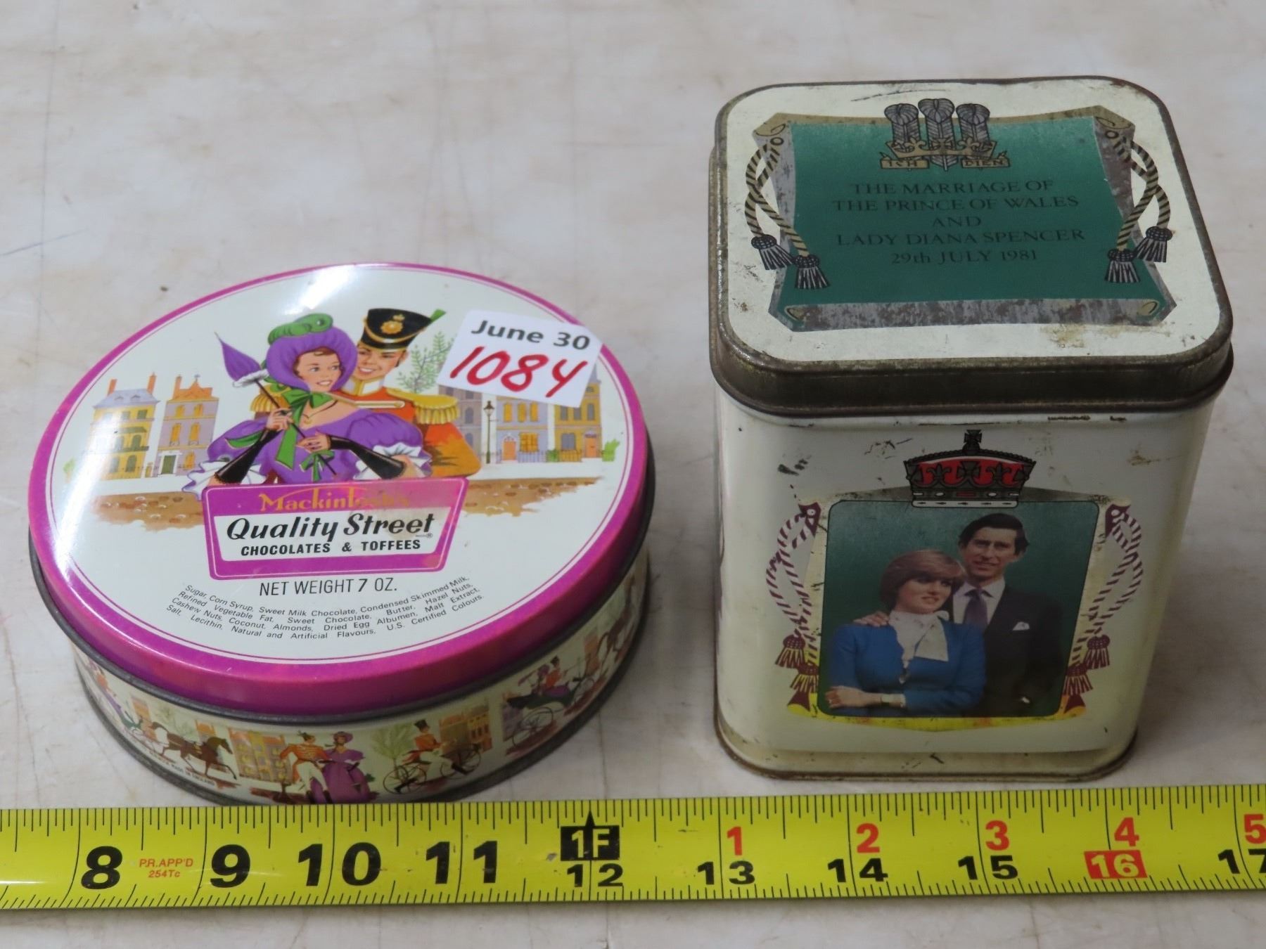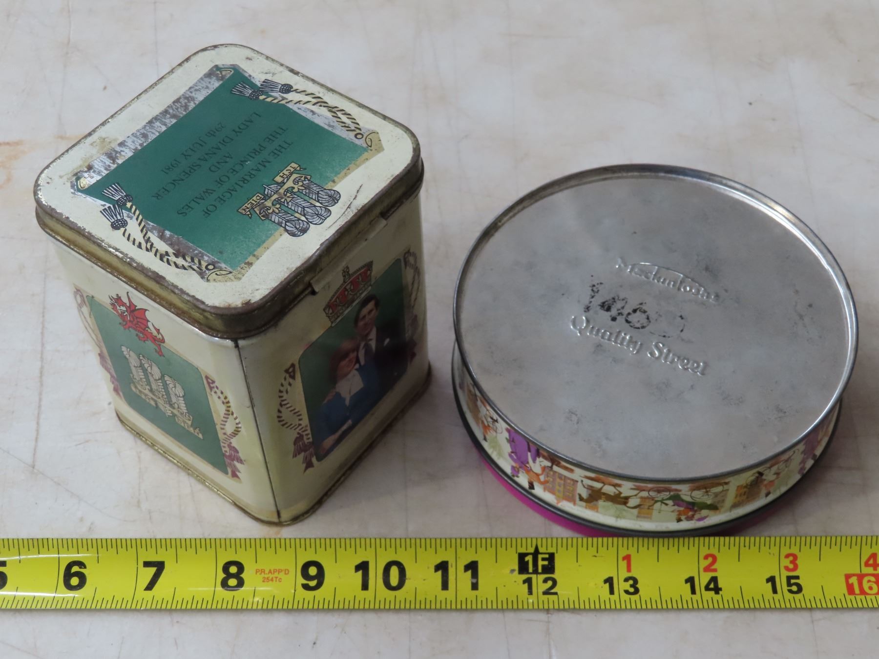 1 Mackintosh’s Quality street tin & 1981cMarriage of the Prince of Wales & Lady Diana Spencer tin