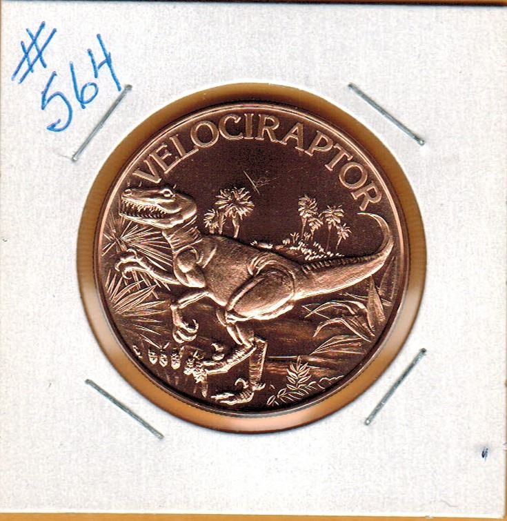 1 OUNCE .999 COPPER - DINOSAUR - VELOCIRAPTOR