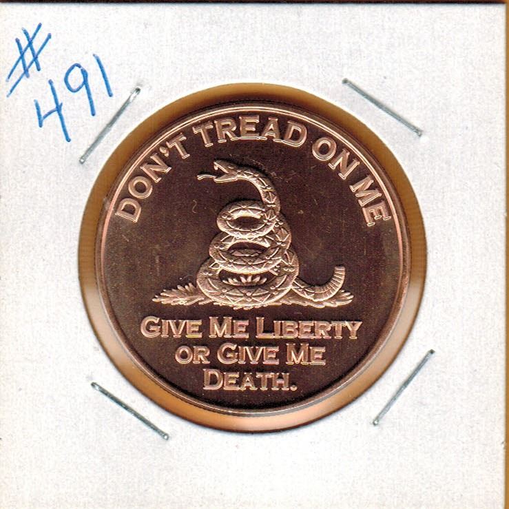 1 OUNCE .999 COPPER - DON'T TREAD ONE ME - GIVE ME LIBERTY OR GIVE ME DEATH
