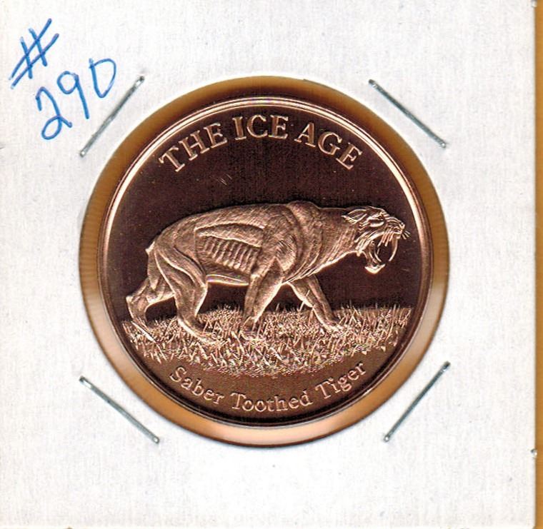 1 OUNCE .999 COPPER - ICE AGE - SABER TOOTHED TIGER