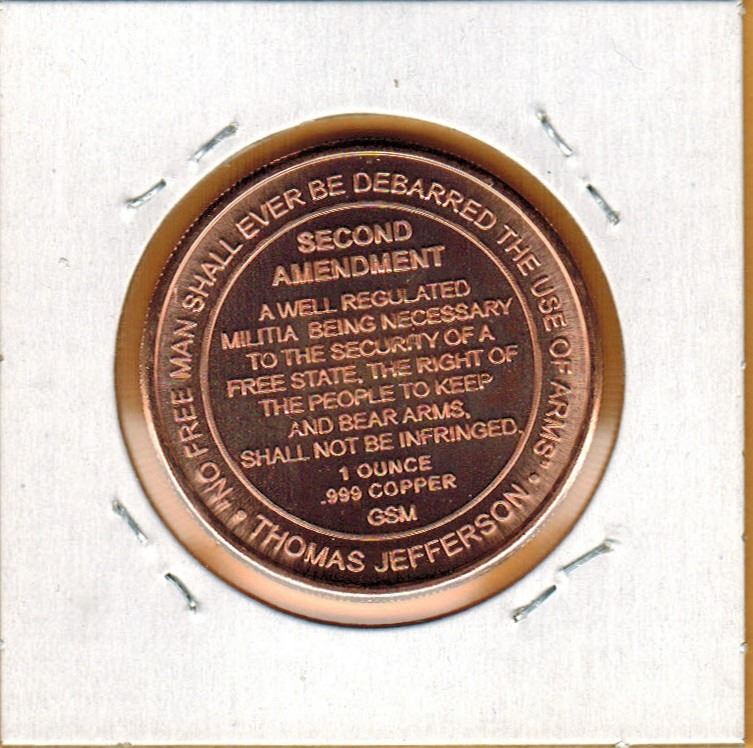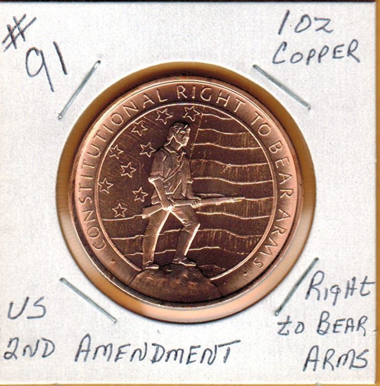 1 OUNCE .999 COPPER - US RIGHT TO BEAR ARMS - 2ND AMENDMENT - 1OZ COPPER COIN
