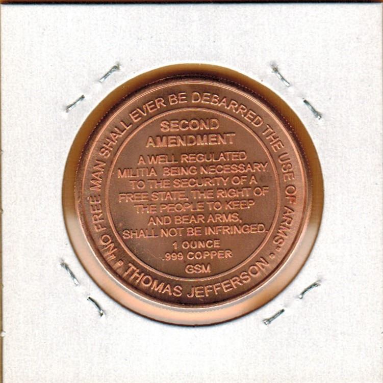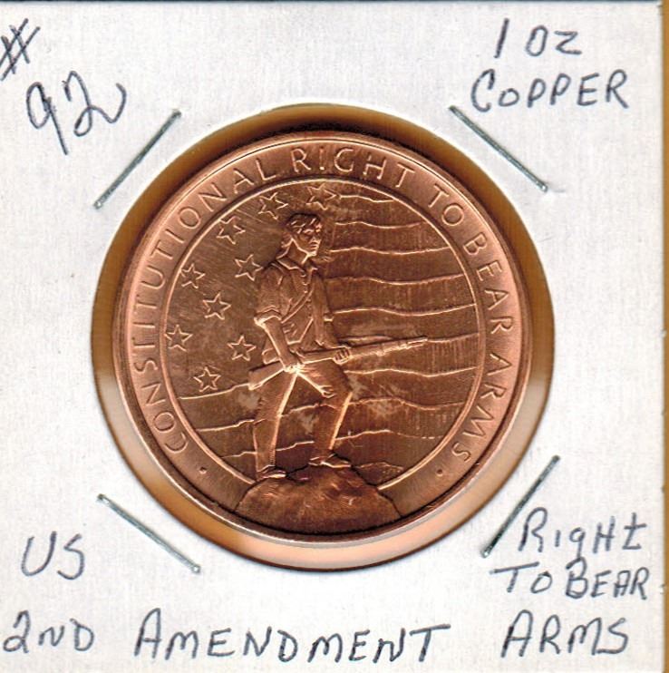 1 OUNCE .999 COPPER - US RIGHT TO BEAR ARMS - 2ND AMENDMENT - 1OZ COPPER COIN