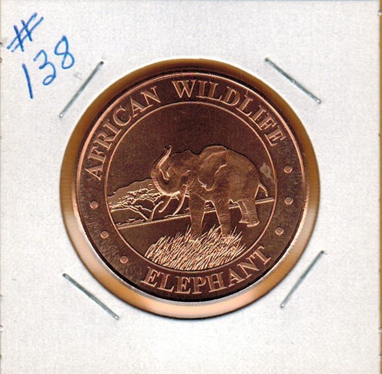 1 OUNCE COPPER .999 FINE - AFRICAN WILDLIFE - ELEPHANT