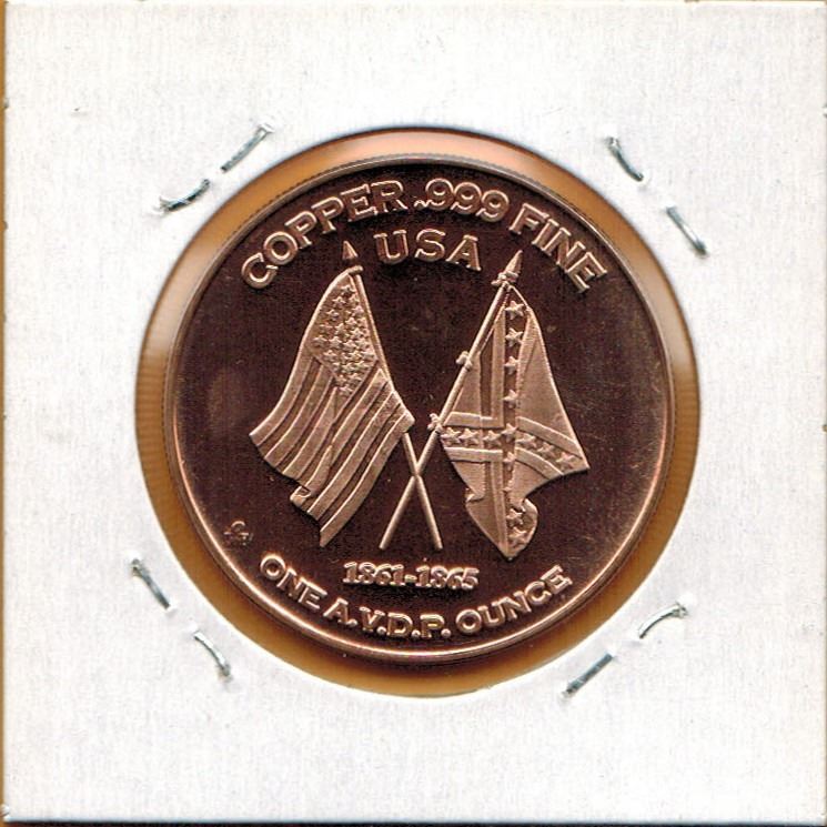 1 OUNCE COPPER - .999 FINE - CIVIL WAR - "THE GENERAL" - 150th ANNIVERSARY
