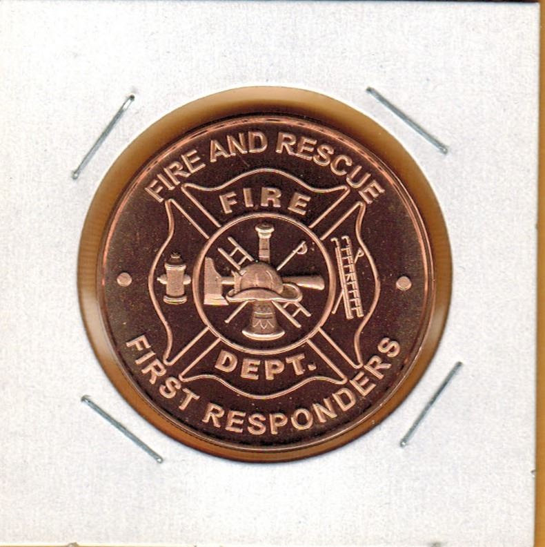 1 OUNCE COPPER - .999 FINE - FIRE DEPT. - FIRE & RESCUE - FIRST RESPONDERS