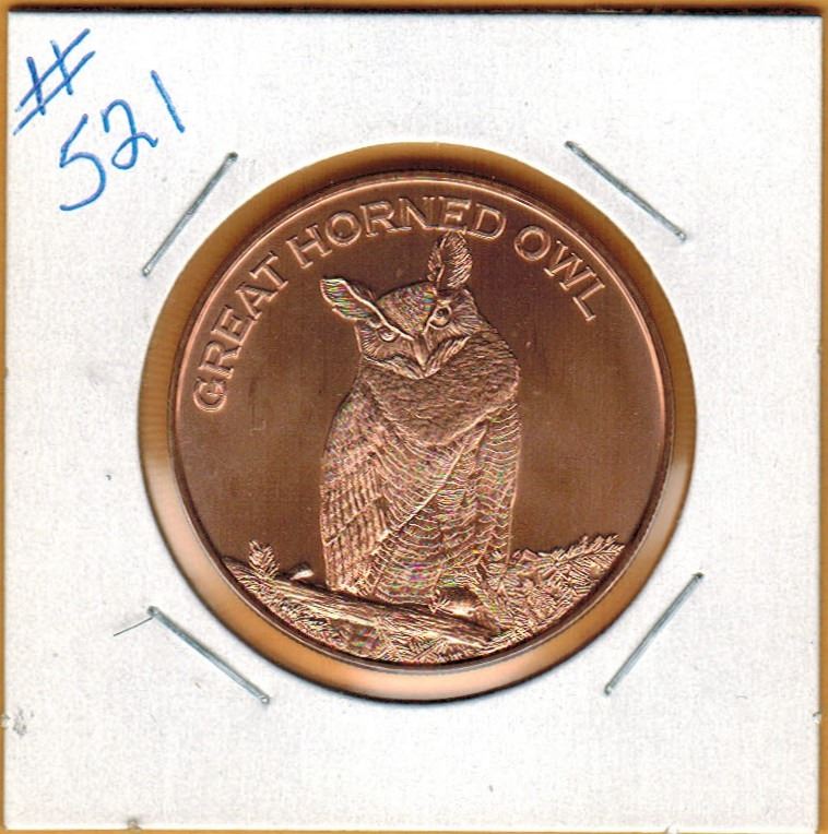1 OUNCE COPPER .999 FINE - GREAT HORNED OWL