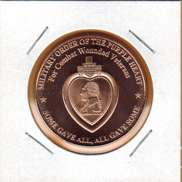 1 OUNCE COPPER - .999 FINE - MILITARY ORDER OF THE PURPLE HEART