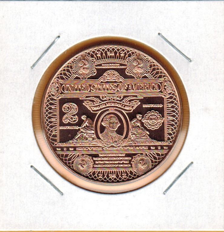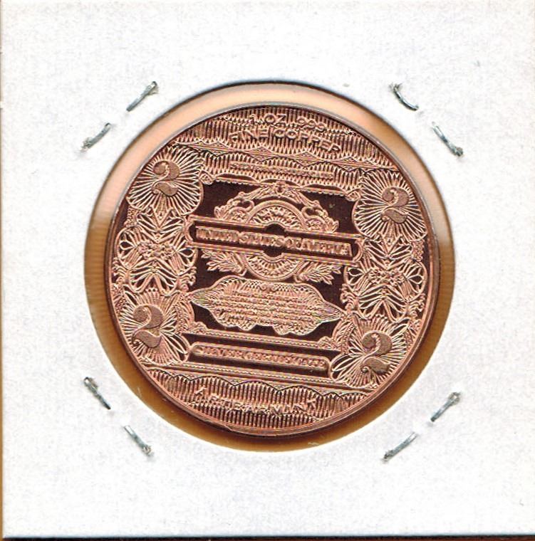 1 OUNCE COPPER - .999 FINE - US $2.00 BANKNOTE DESIGN