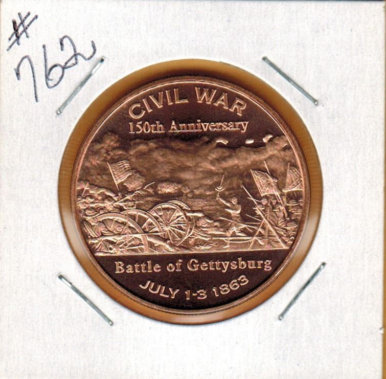 1 OUNCE COPPER .999 FINE - US CIVIL WAR - BATTLE OF GETTYSBURG