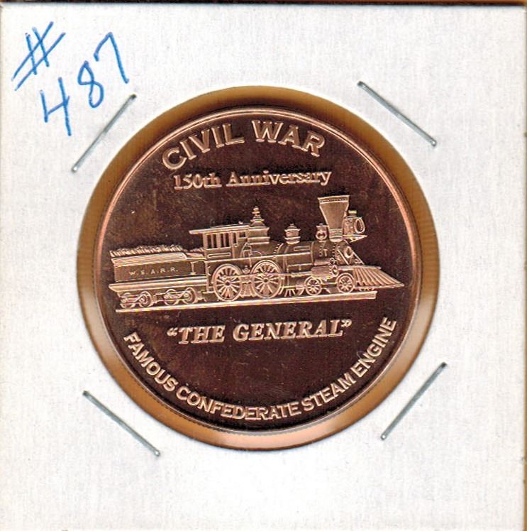 1 OUNCE COPPER .999 FINE - US CIVIL WAR - "THE GENERAL" - CONFEDERATE STEAM ENGINE