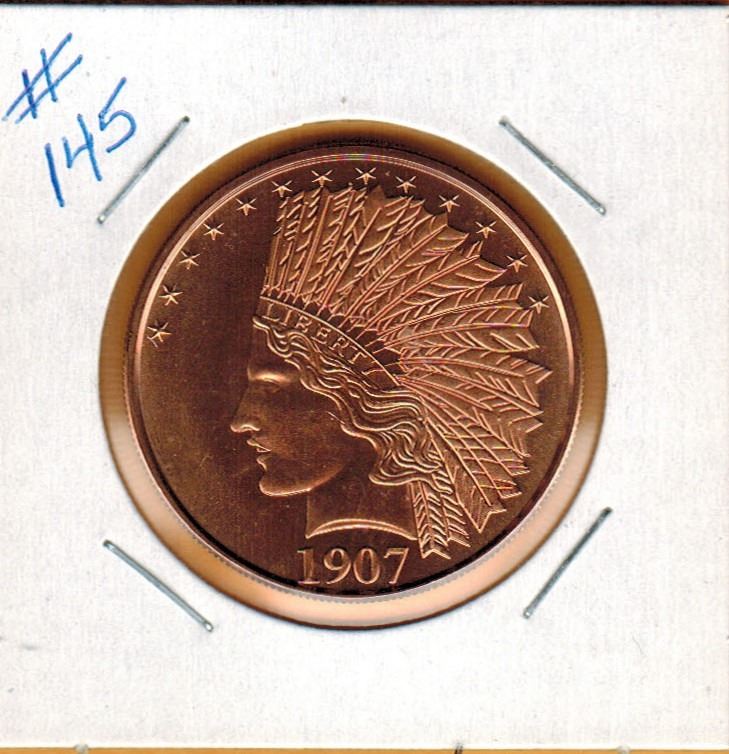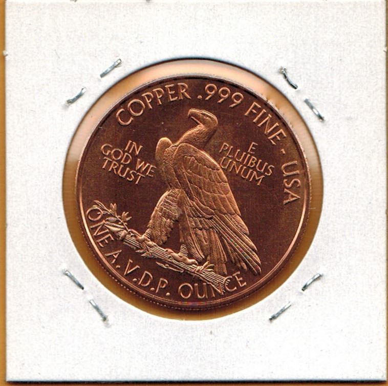 1 OUNCE COPPER .999 FINE - US INDIAN HEAD GOLD COIN DESIGN