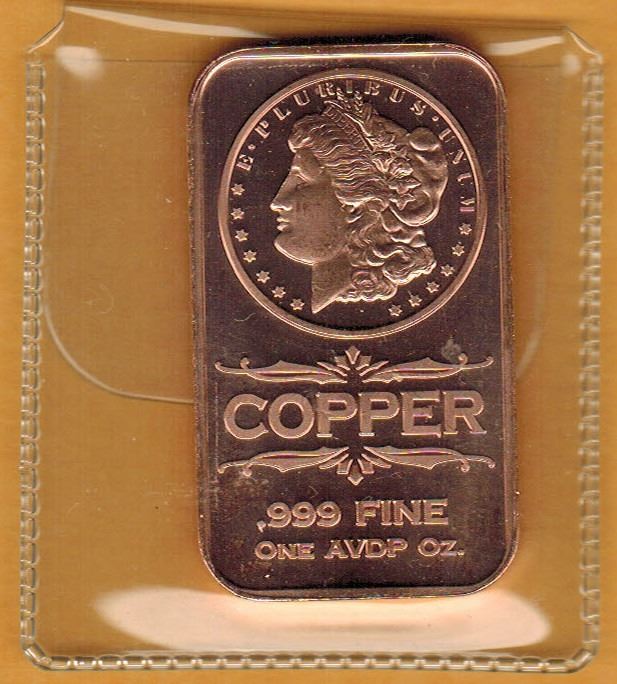 1 OUNCE COPPER BAR - .999 FINE - MORGAN DOLLAR COIN DESIGN