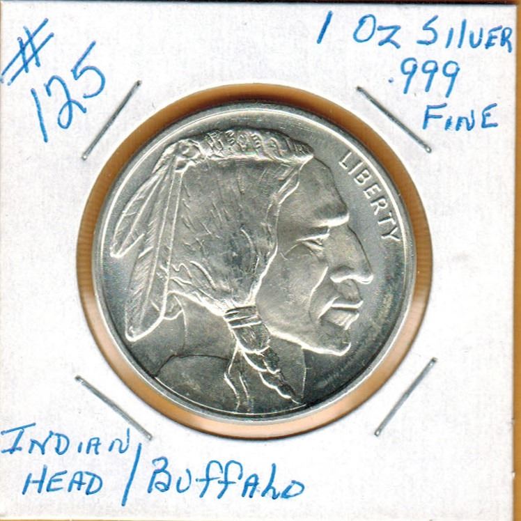 1 OUNCE SILVER - .999 FINE SILVER - INDIAN HEAD / BUFFALO DESIGN