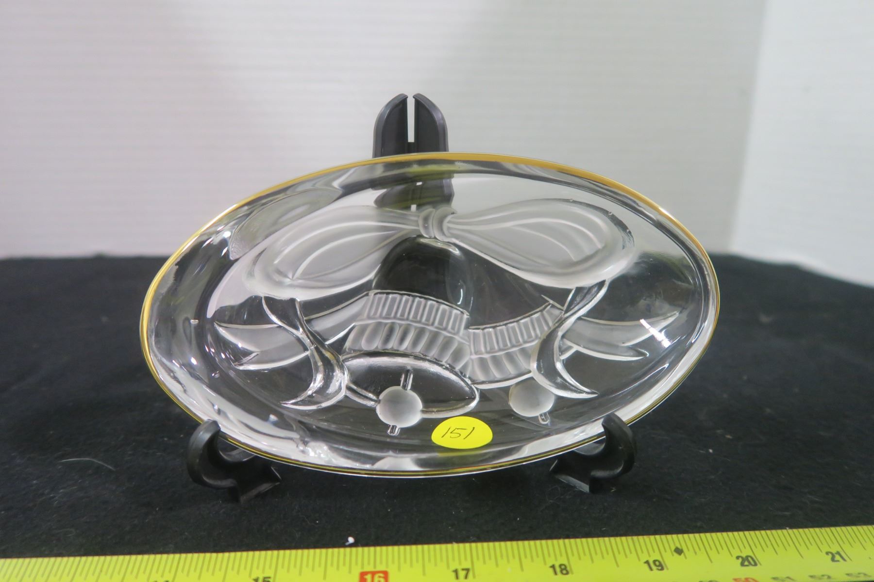 1 Oval Gold Rimed Glass Bell Dish & Stand