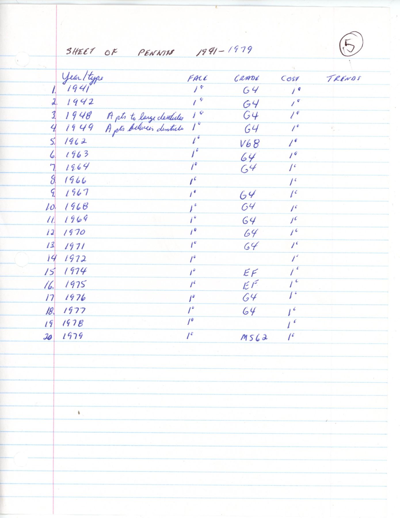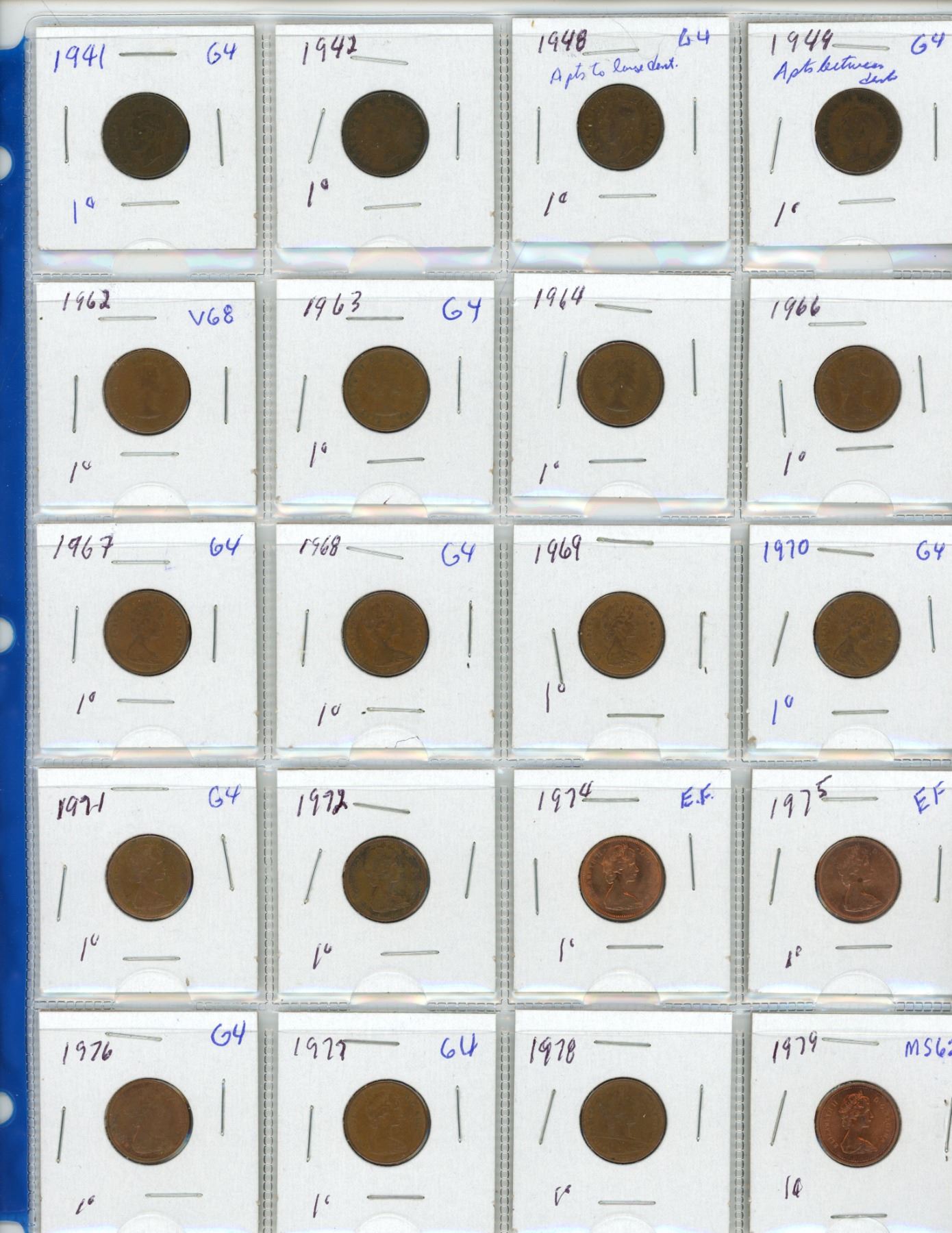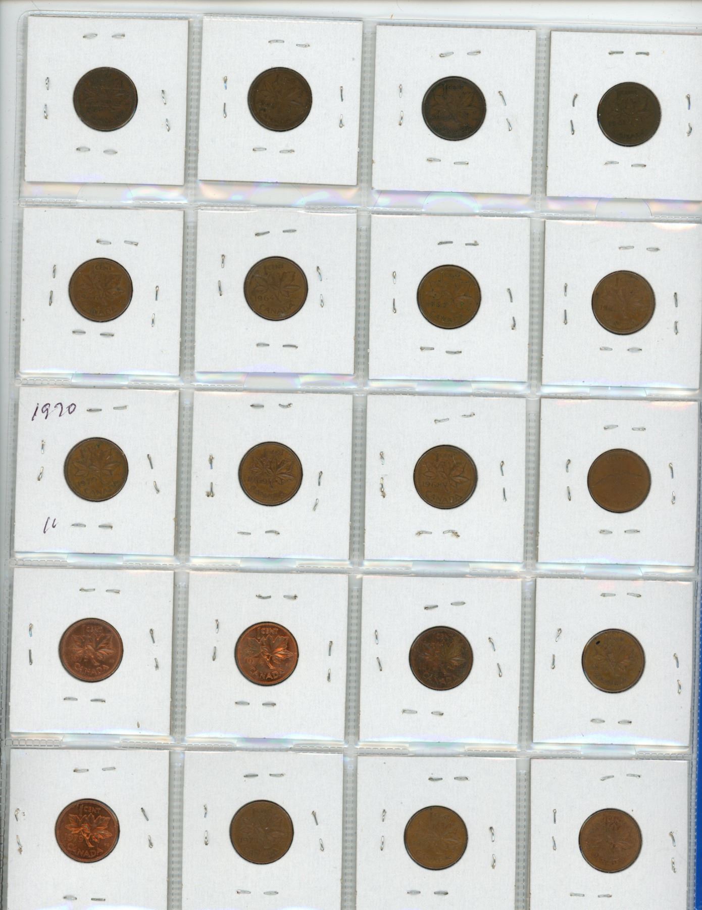 1 Page of Canadian Pennies 1941-1979