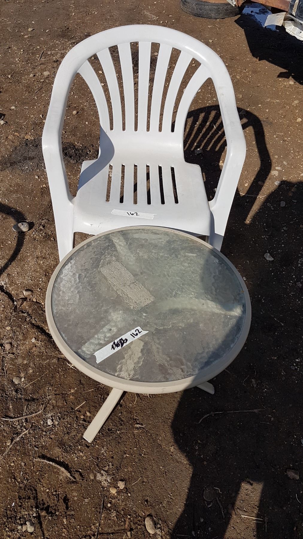 1 Plastic Chair & Glass Side Table