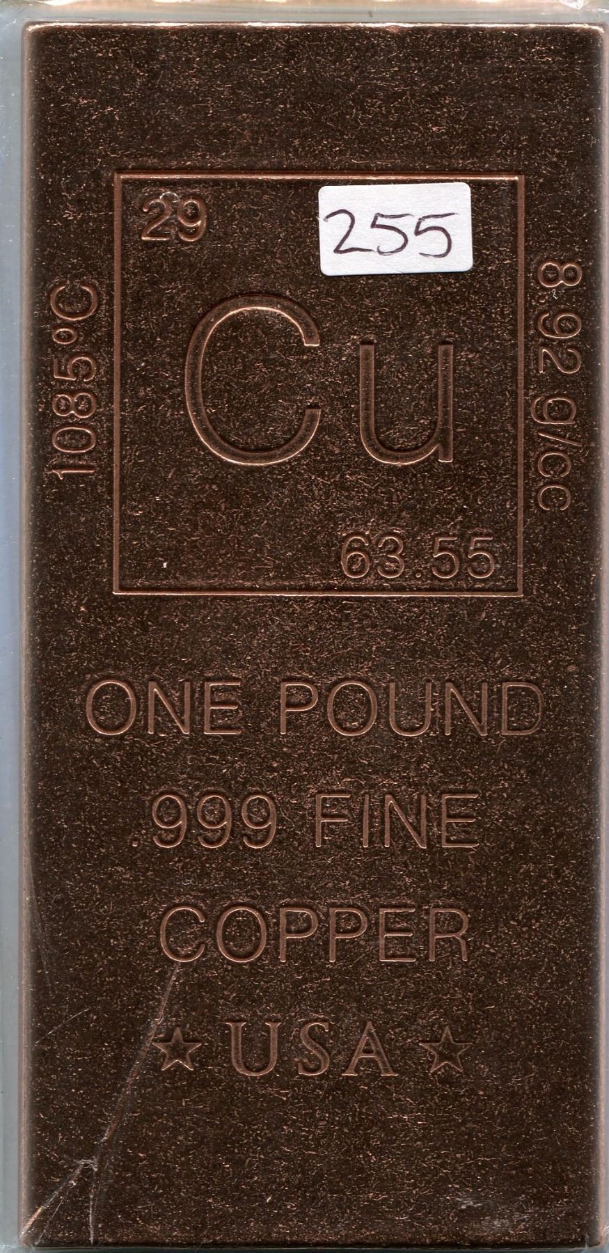 1 Pound .999 Fine Copper Bar,1-Copper Bar with Periodic table info for Copper imprinted on the bar