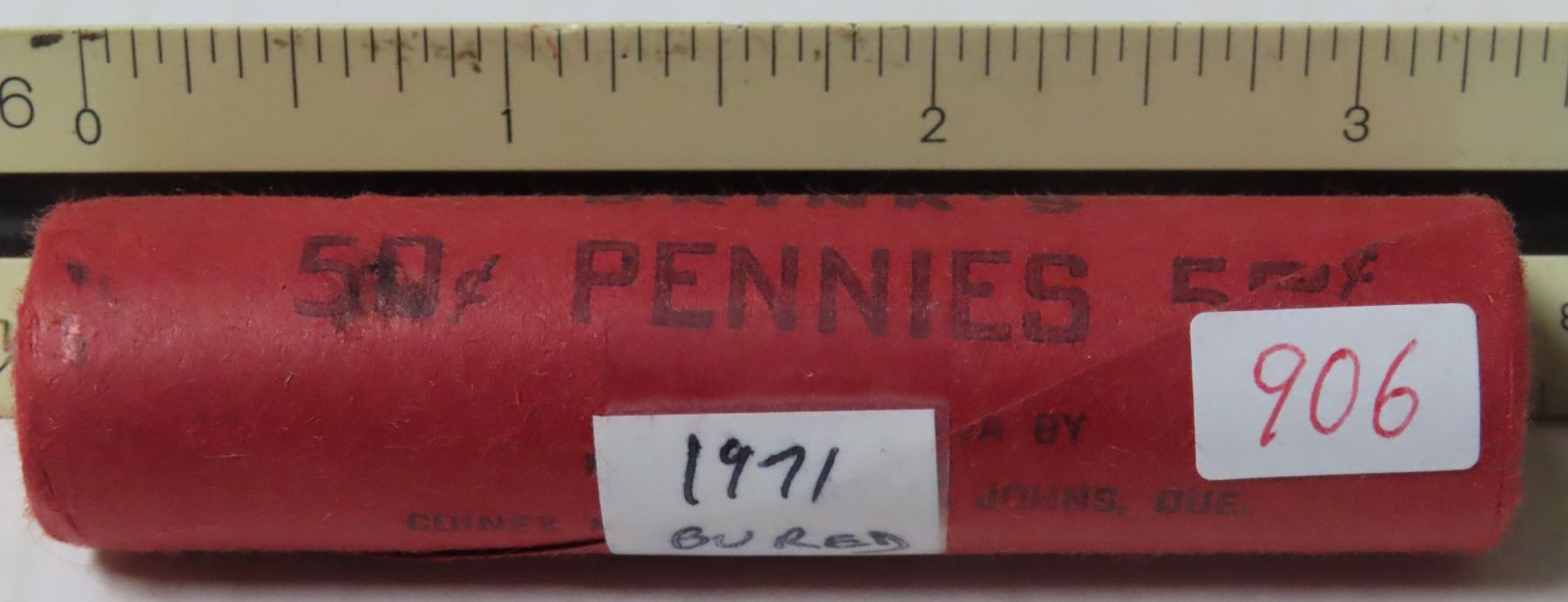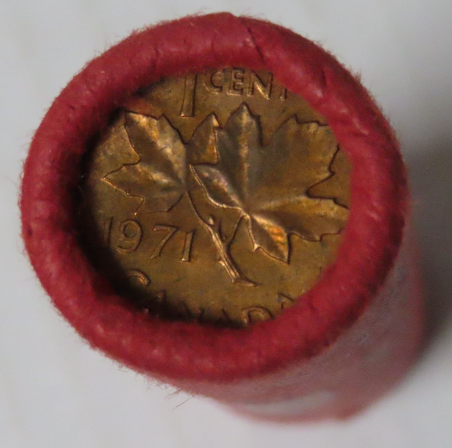 1 Roll of 50 Canadian 1971 Cents. Housed in an original Brinks Roll. BU Red.