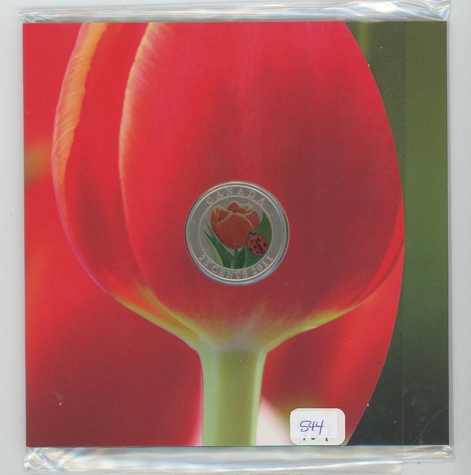 2011 25cent Tulip with Ladybug - Coloured Coin $40.00 at Canadian and Currency