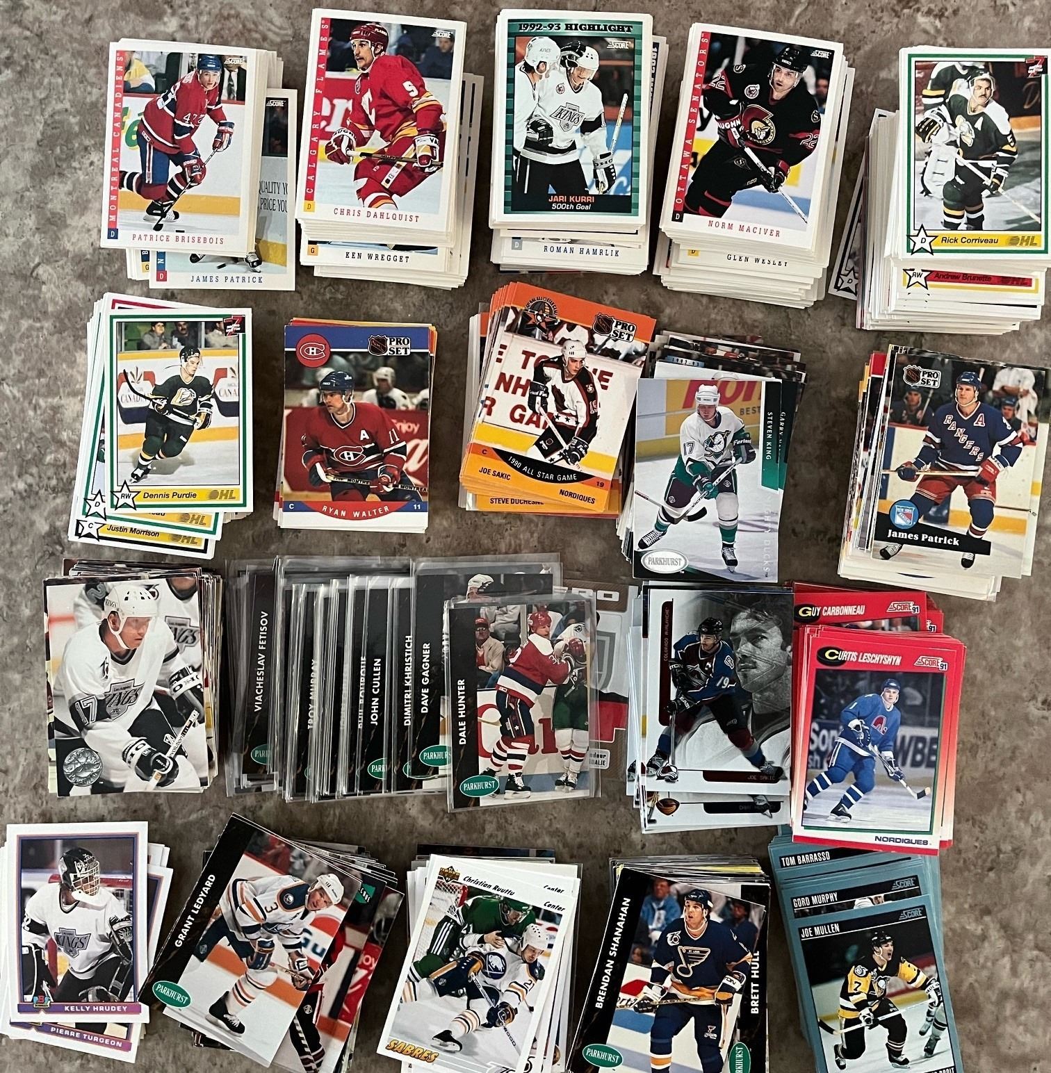 1 Shoe box of misc hockey cards. Score, ITG, Pro Set, 7th Inning, Bowman., Parkhurst. Mostly 1990[x=