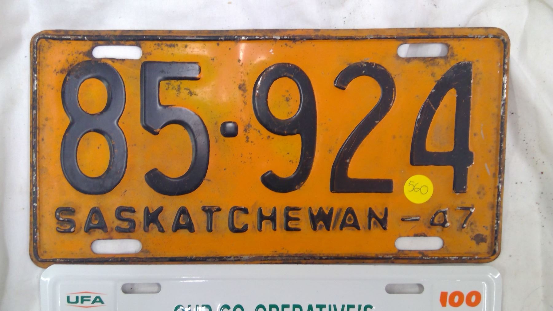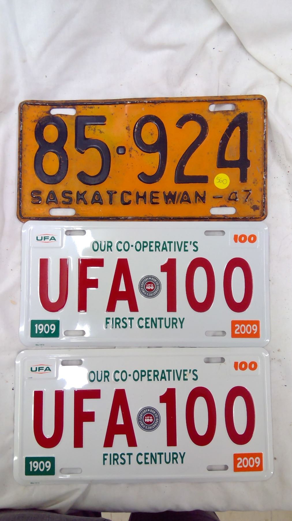 1- VINTAGE 1947 SASKATCHEWAN LICENCE PLATE + 2- 2009 LICENSE PLATES