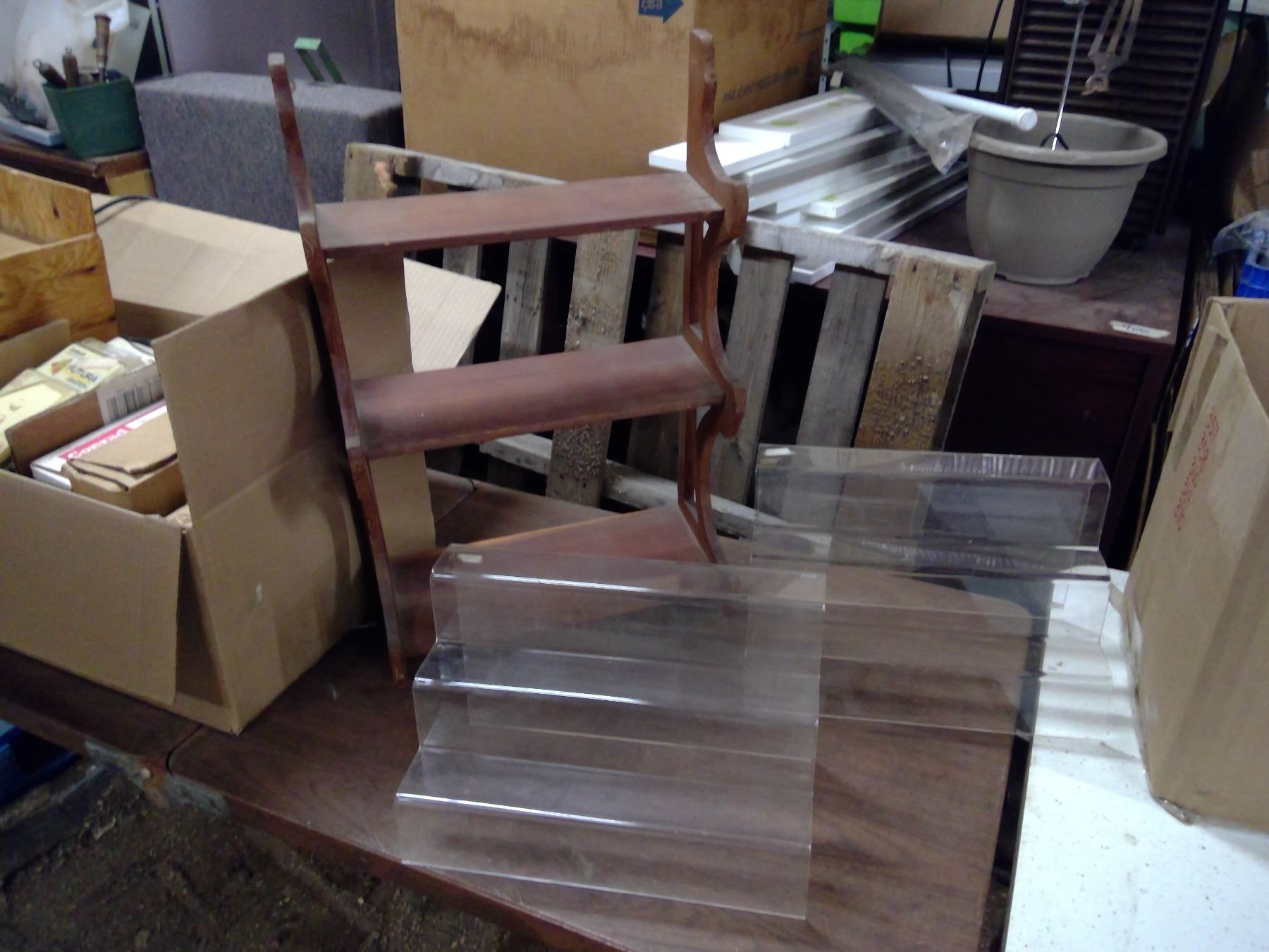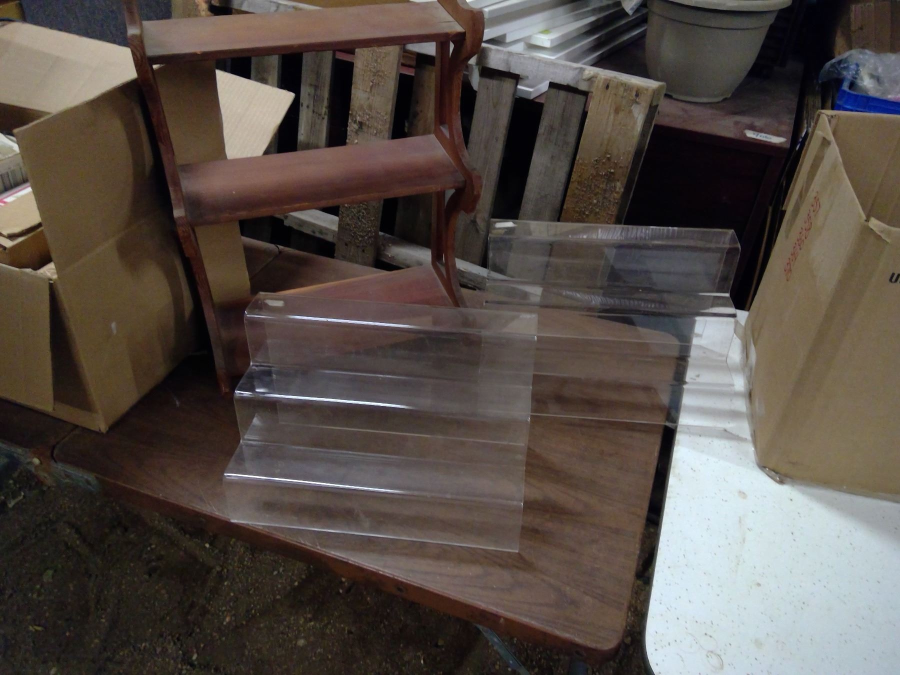 1 WOODEN AND 2 PLASTIC DISPLAY STANDS