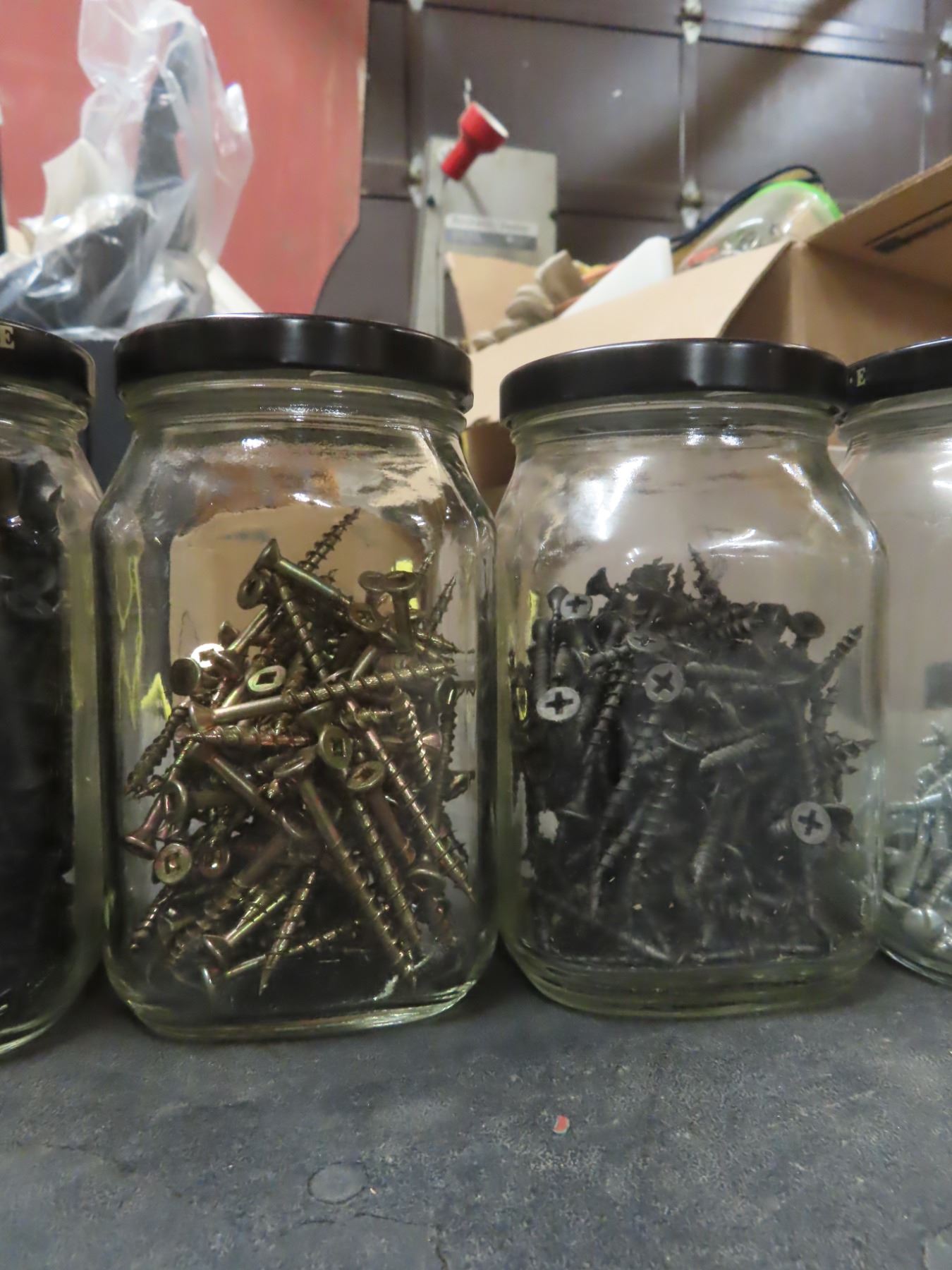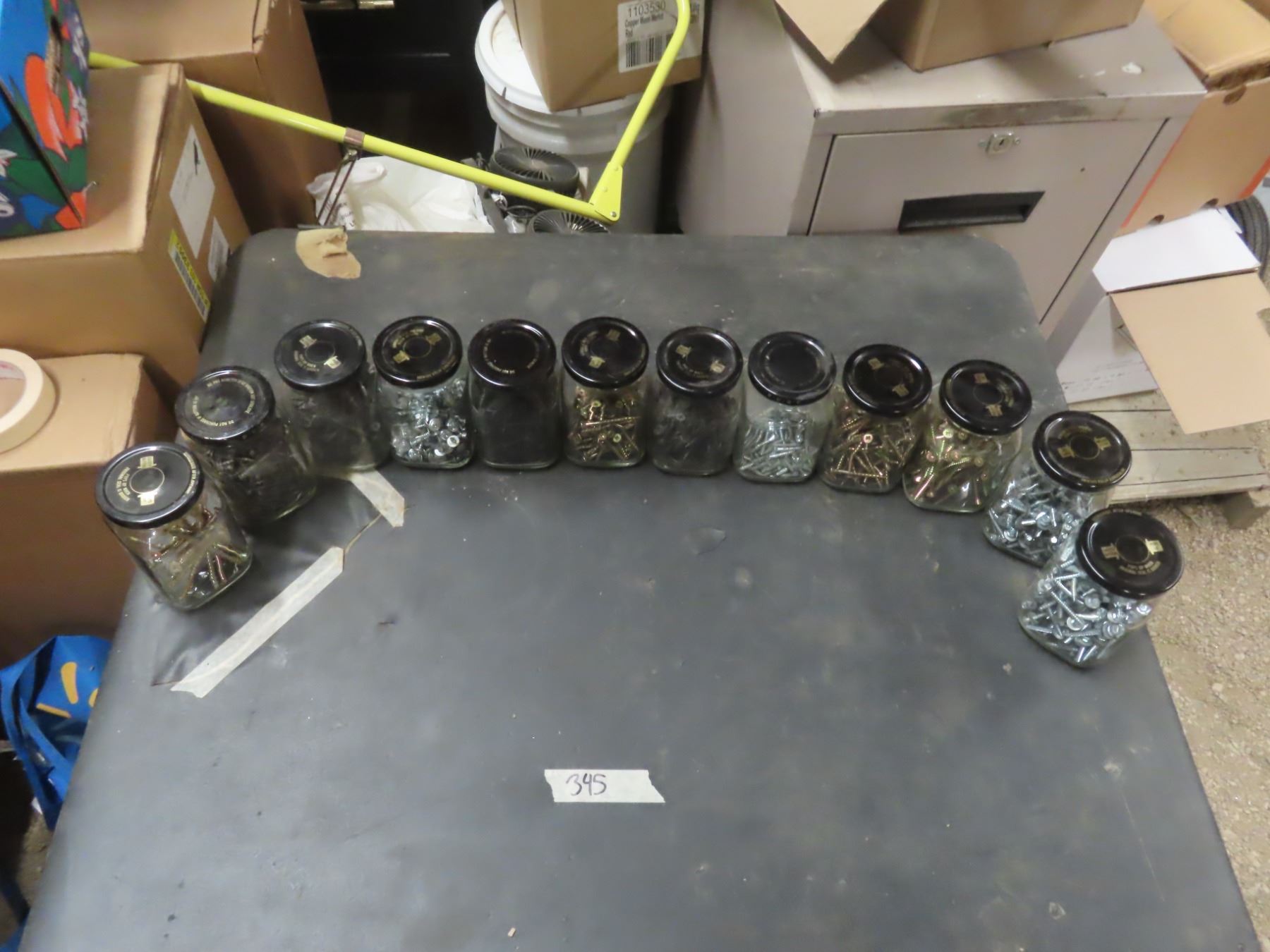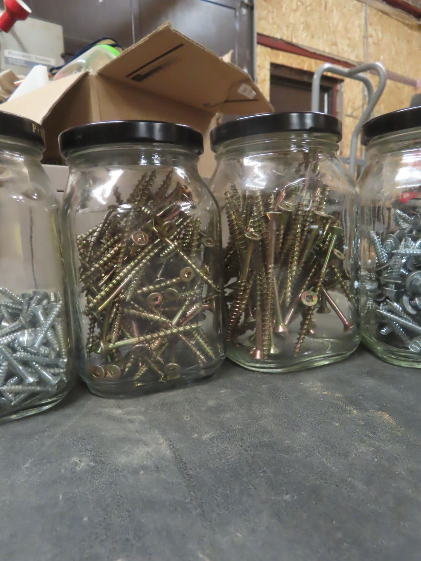 1 box assorted screws - sorted by size in 12 jars