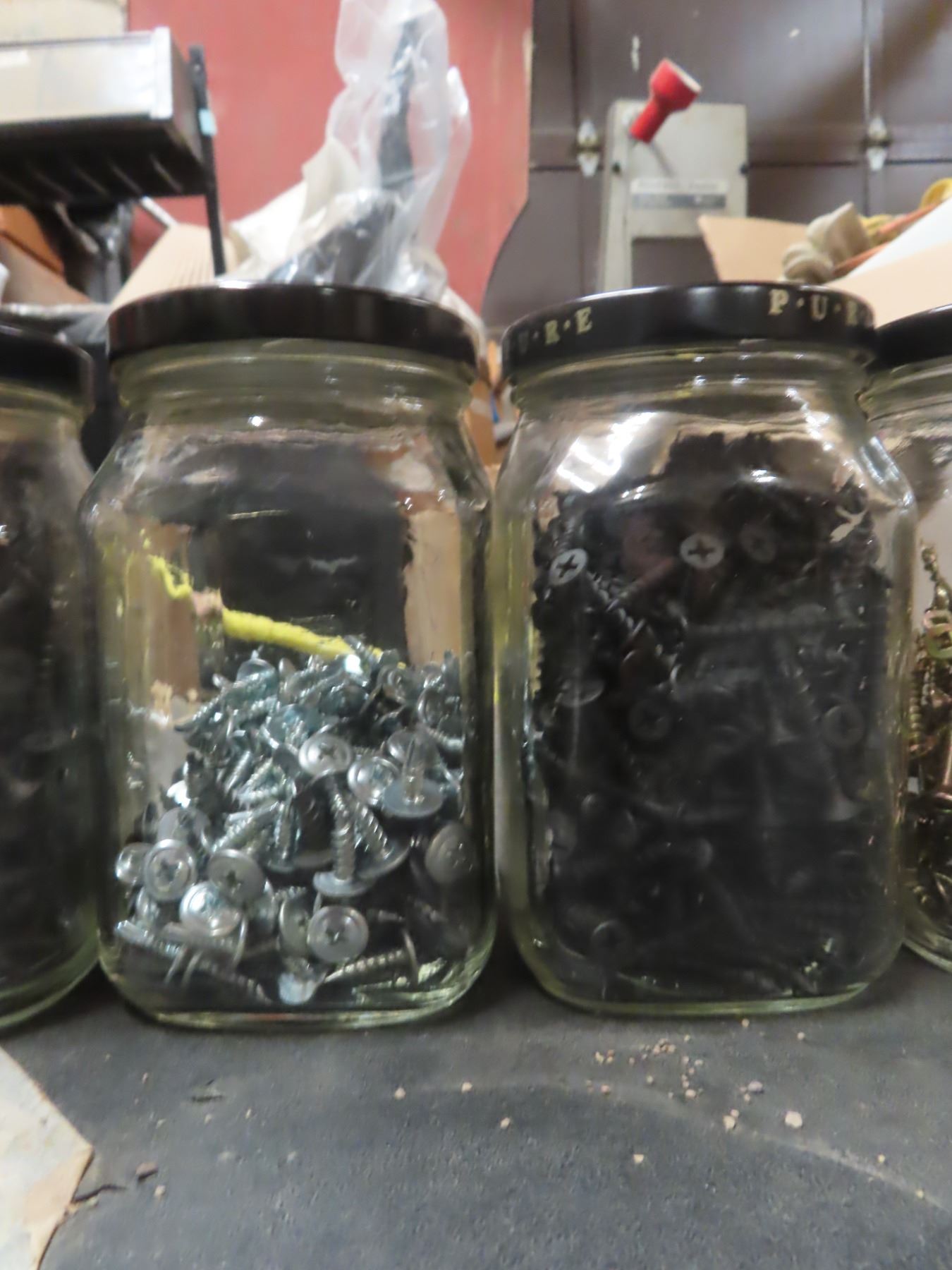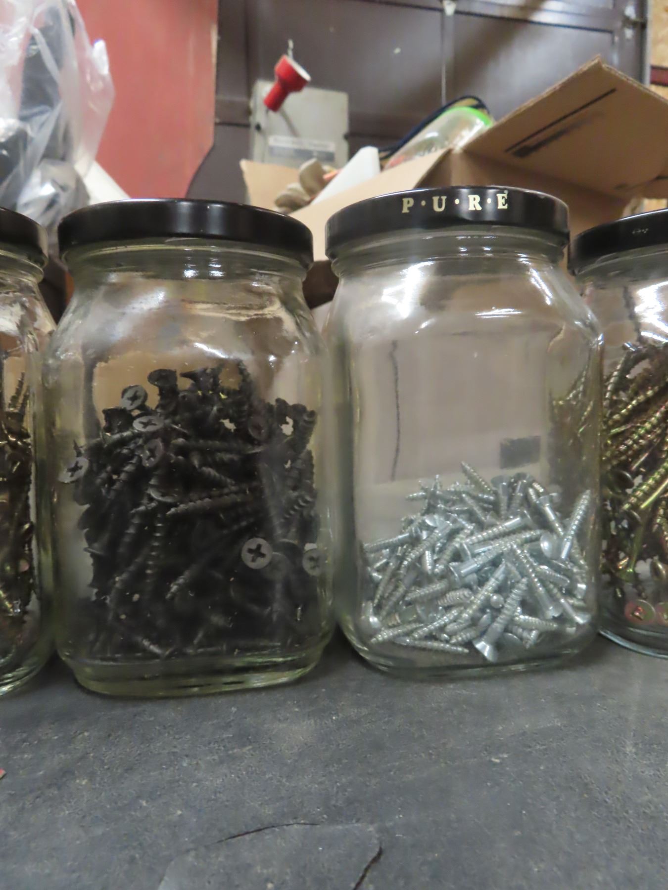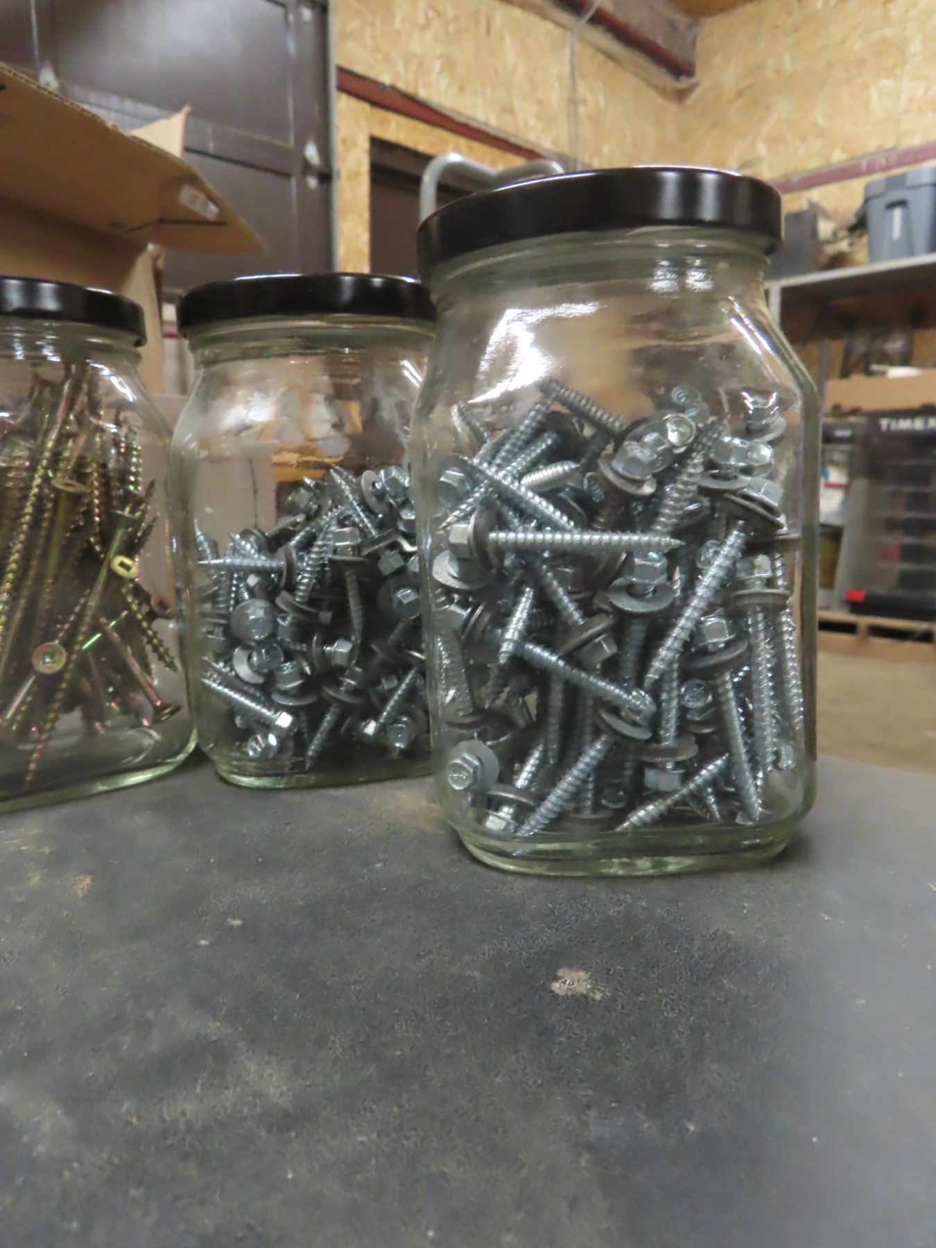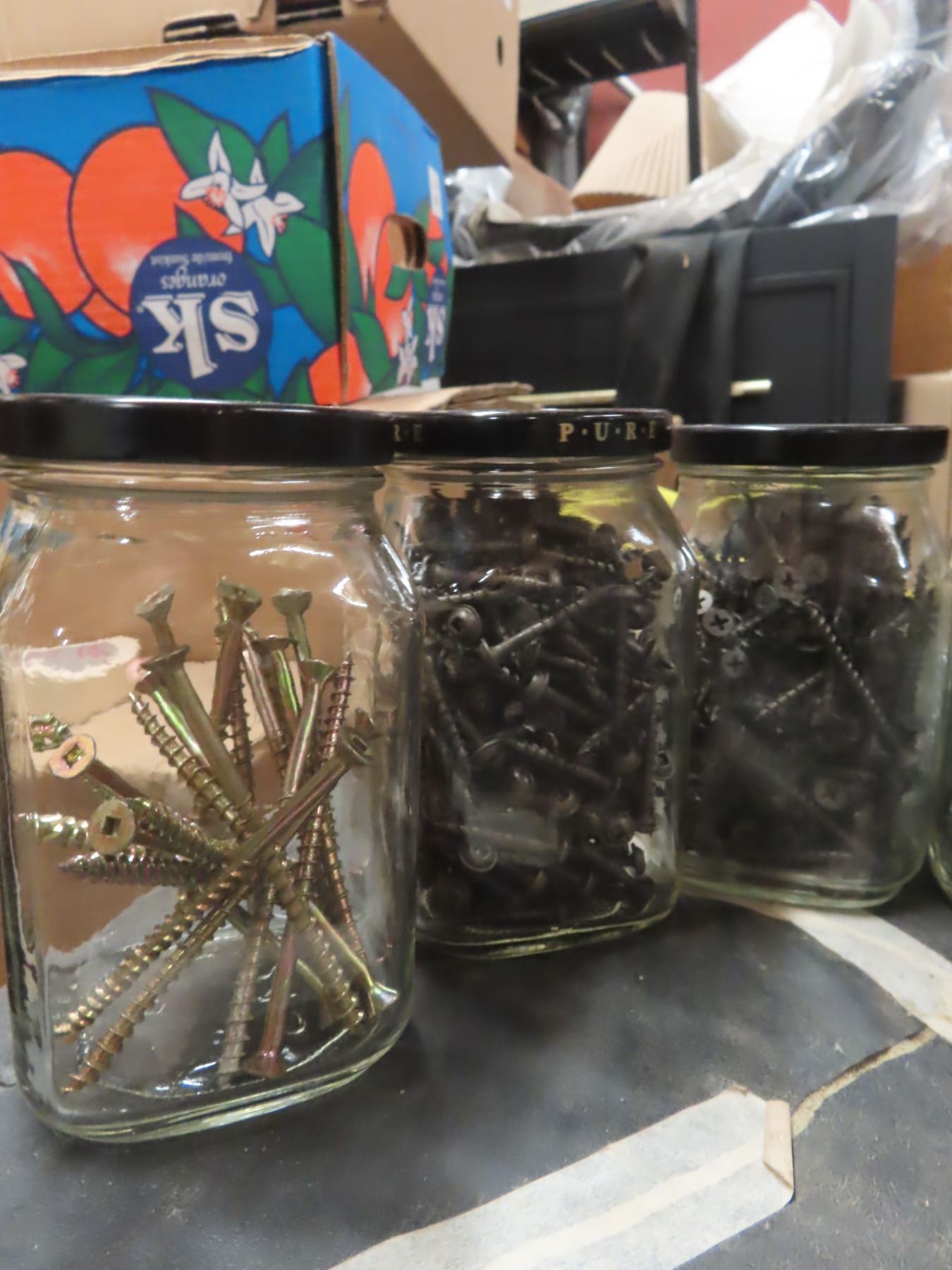 1 box assorted screws - sorted by size in 12 jars