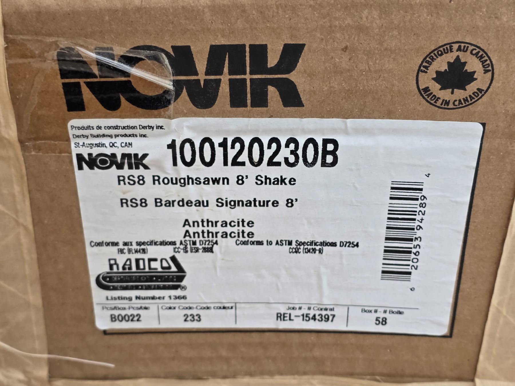 1 box of 8' Roughsawn shake- anthacite - approx 59.5 square feet per box