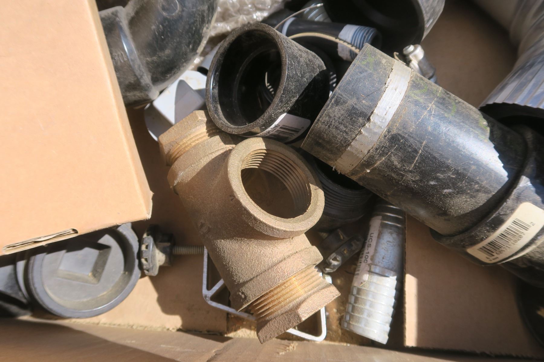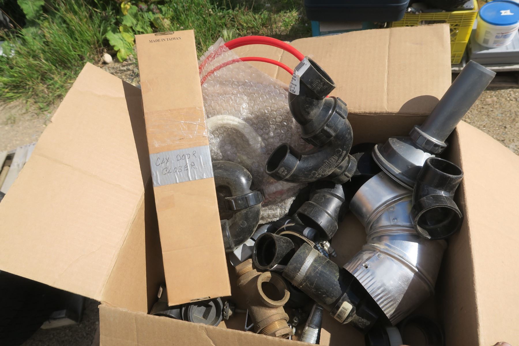 1 box of ABS plumbing fittings & door closer for screen door.