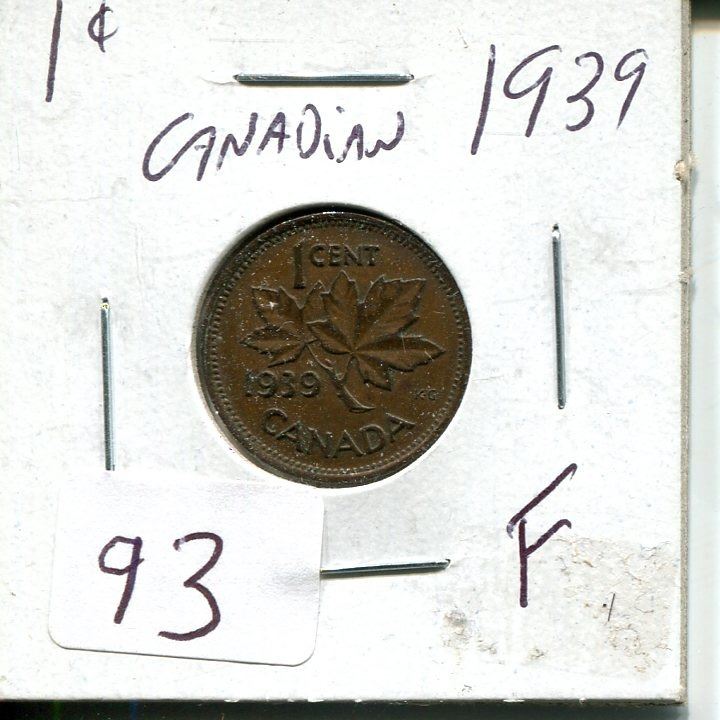 1 cent Canadian 1939 "F" penny coin